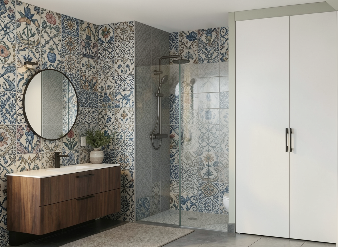 render this image into a kitchen soft neutral on the wall and a complimentary colour on the cupboards include an island and paint this in a muted soft green have a warm neutral countertop include gold framed pendants over the isalnd include a round dining table and four chairs
