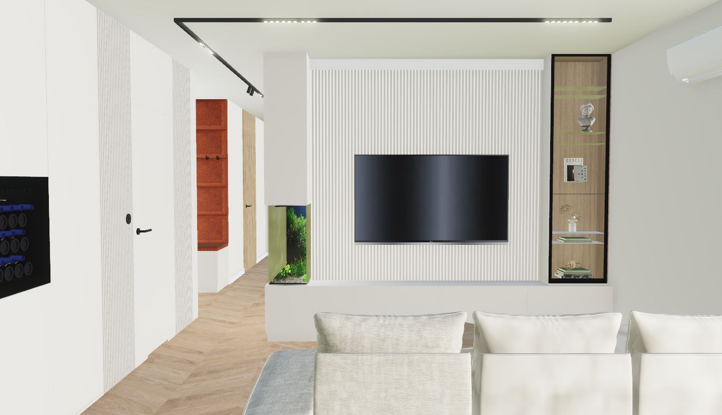 be owa welurowa kanapa ruda welurowa tapicerka na siedzisku w korytarzu led wiec cy spod przes ony karniszowej na cian telewizyjn