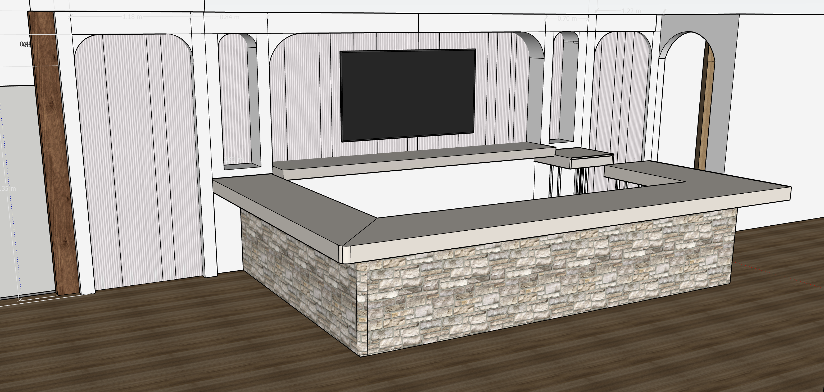 bar with wooden floor indirect lighting stone cover bar and quartz top tv set and drink and draft beer