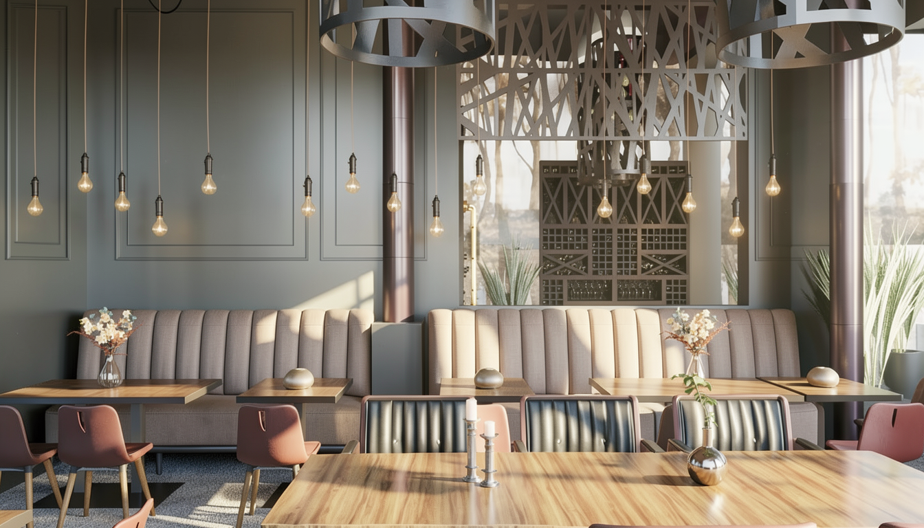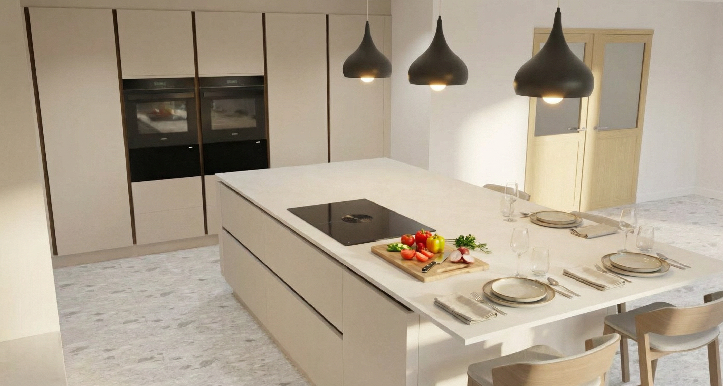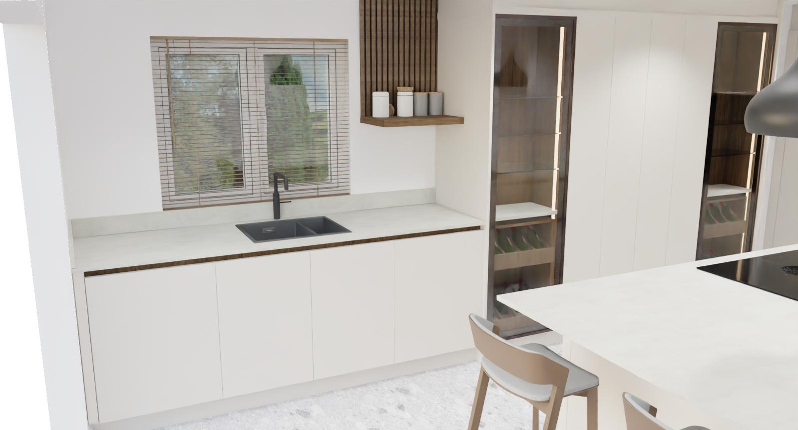champagne flutes and cocktail glasses in glazed cabinet natural lighting