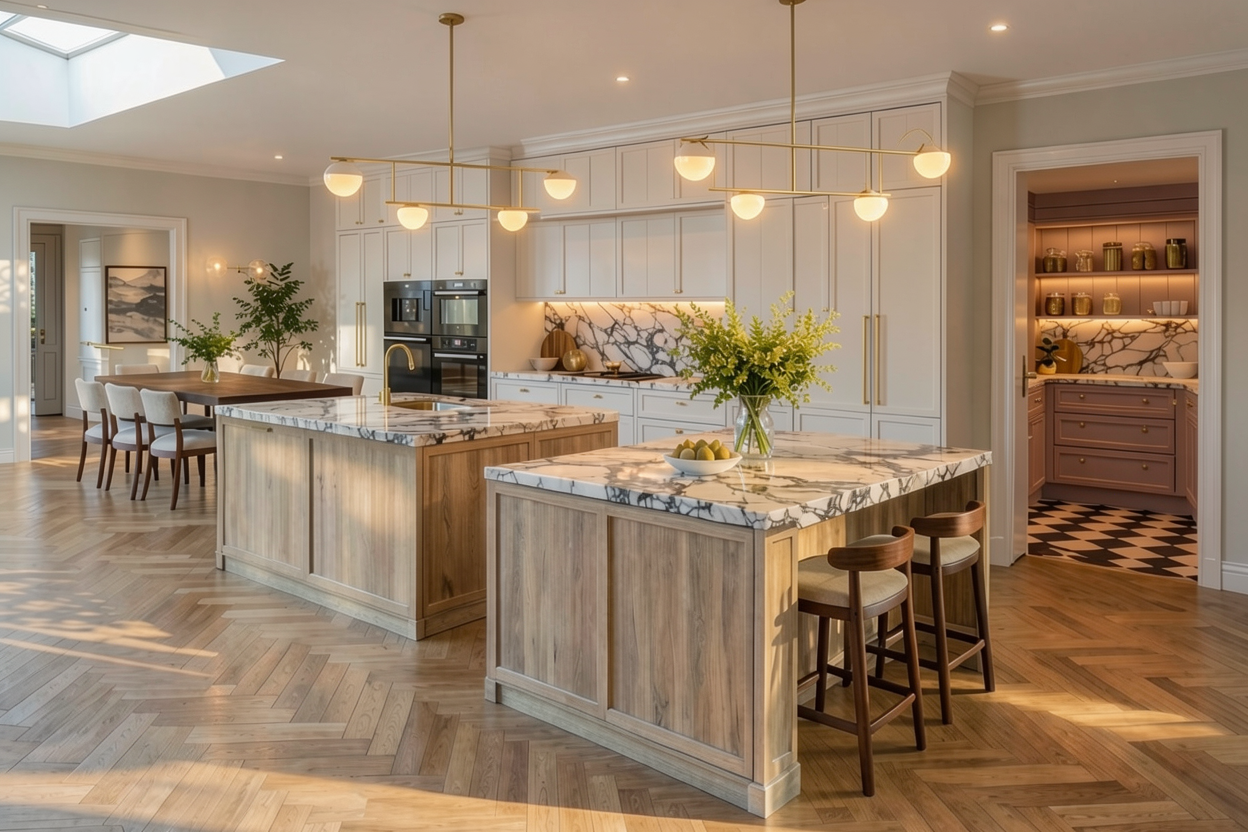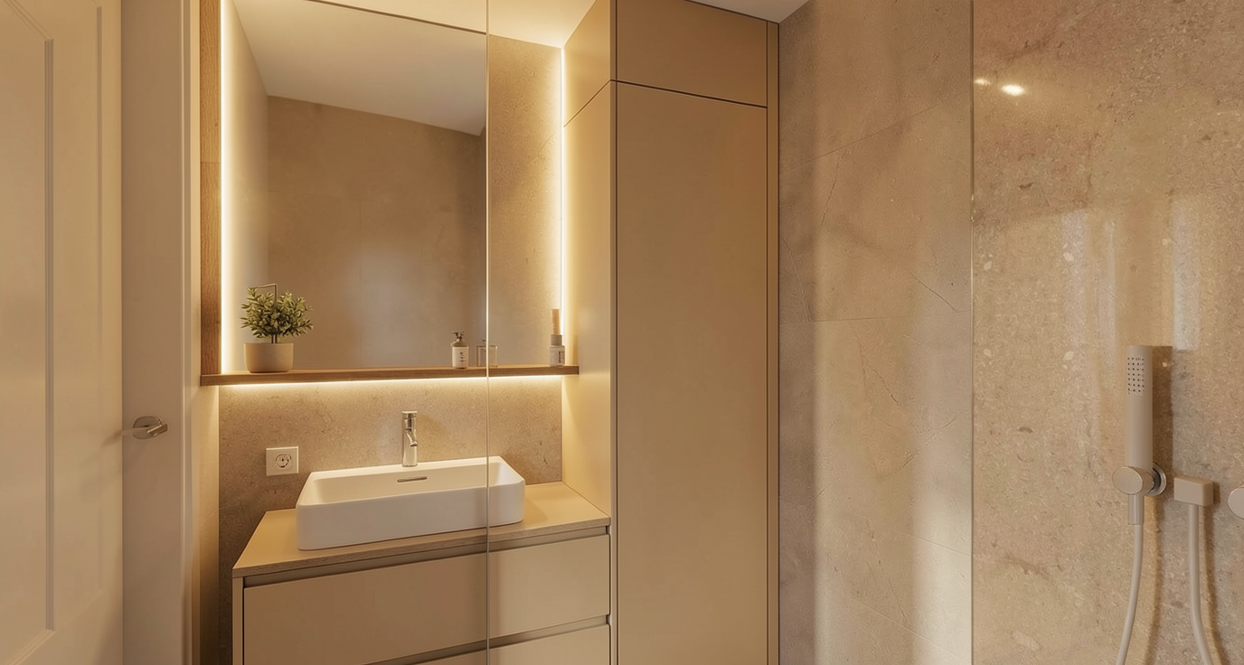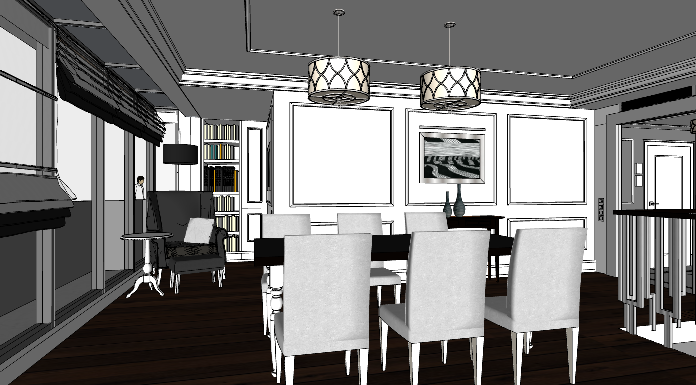 international style interior shot create a nice realistic interior visualization use natural materials and maintain correct scale and proportions use physically accurate lighting with soft global illumination and high quality textures ensure precise details with realistic reflections and shadows the lamps are turned on and emit warm light with visible light sources keep natural exposure a nice view is visible through the window do not add stylization or artistic effects the result must be photorealistic architecture