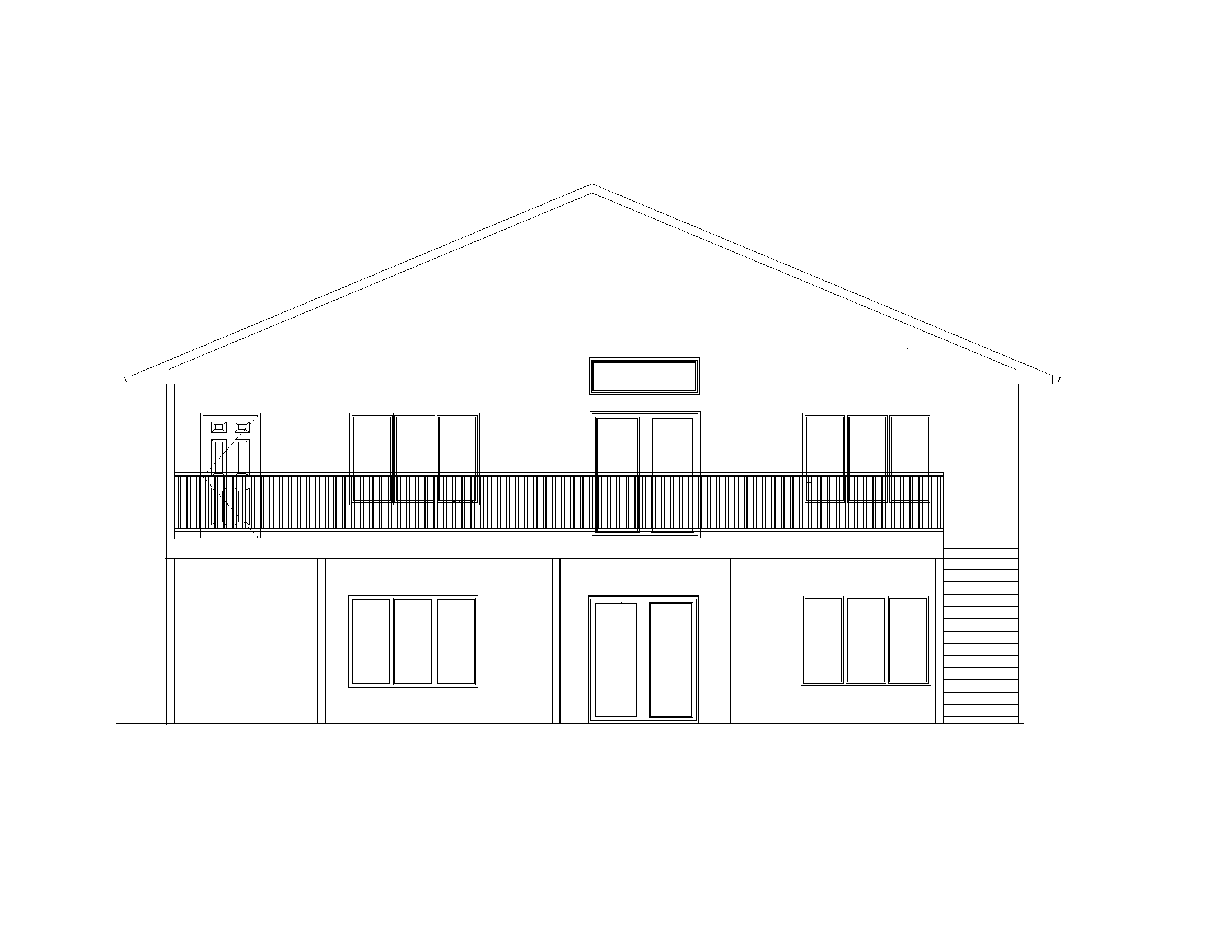 black roof white windows white vertical board and batten siding black metal rails on the deck white siding keep everything but remove deck and patio on the bottom level only no black siding