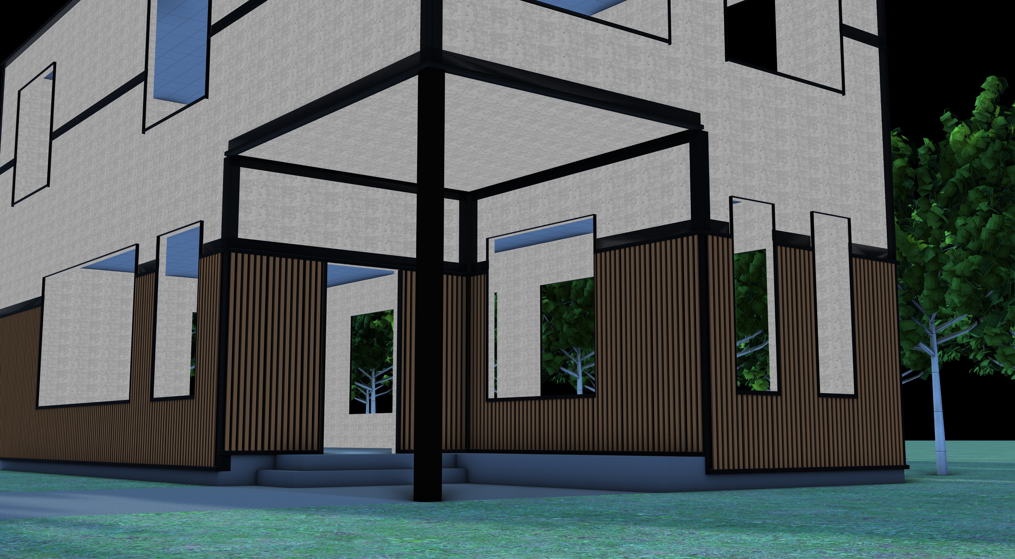 keep all details the same remove ground and trees add natural lighting with soft shadows keep window frames without windows add realism filter