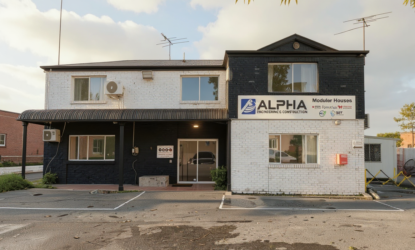 a two storey building painted only with pale light grey