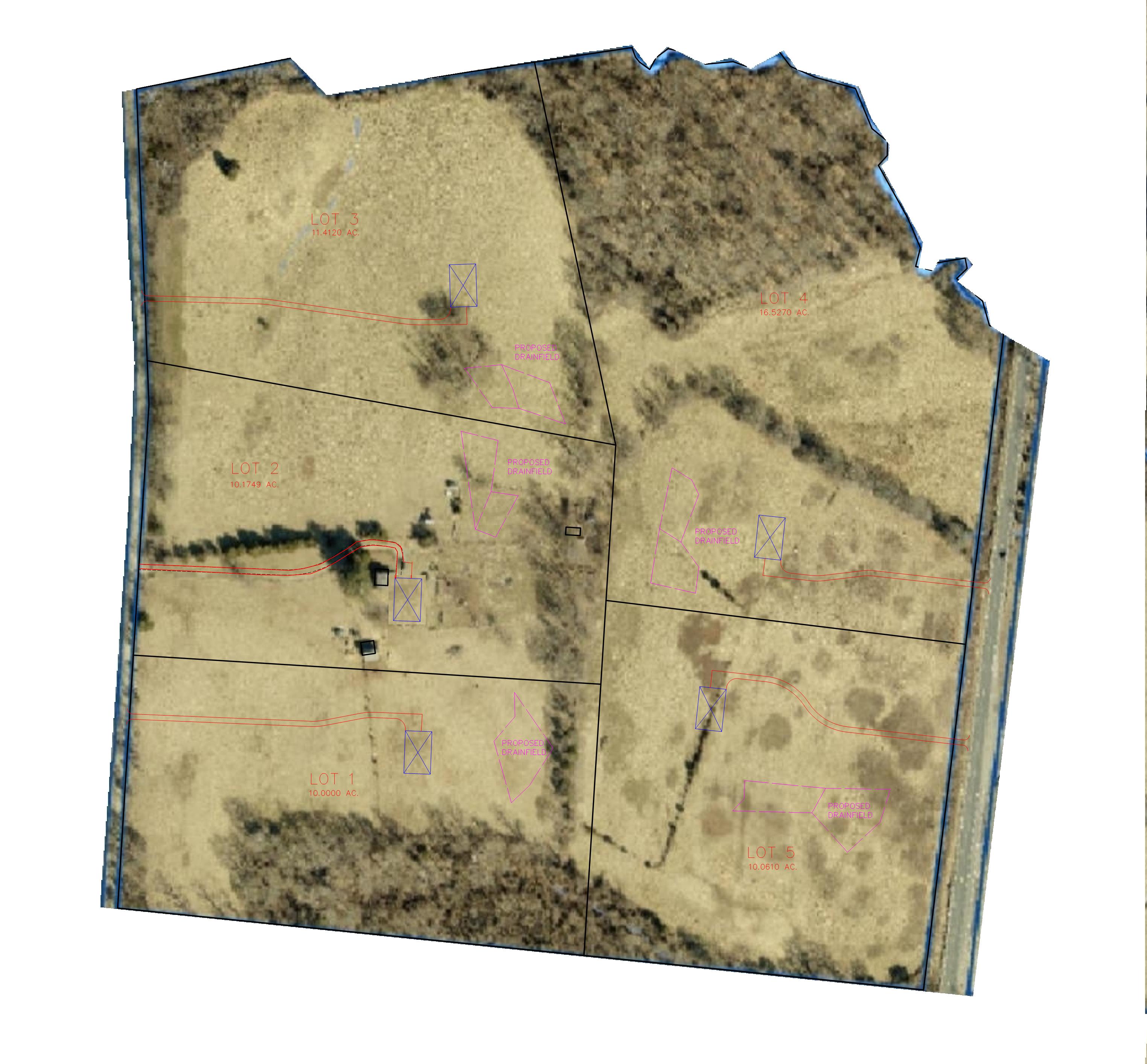 i want to see a marketing ready plat replacing the blue boxes with a house mock up make the driveways shown in red look like asphalt driveways