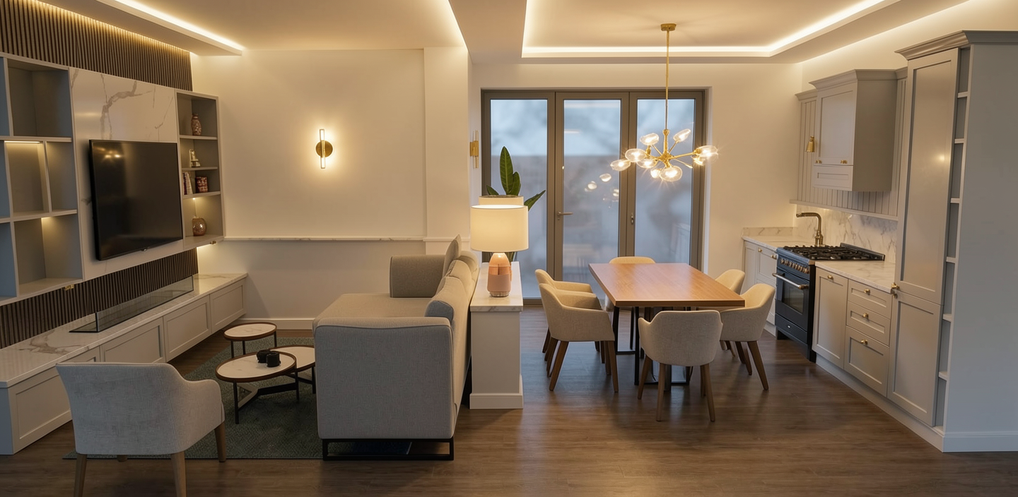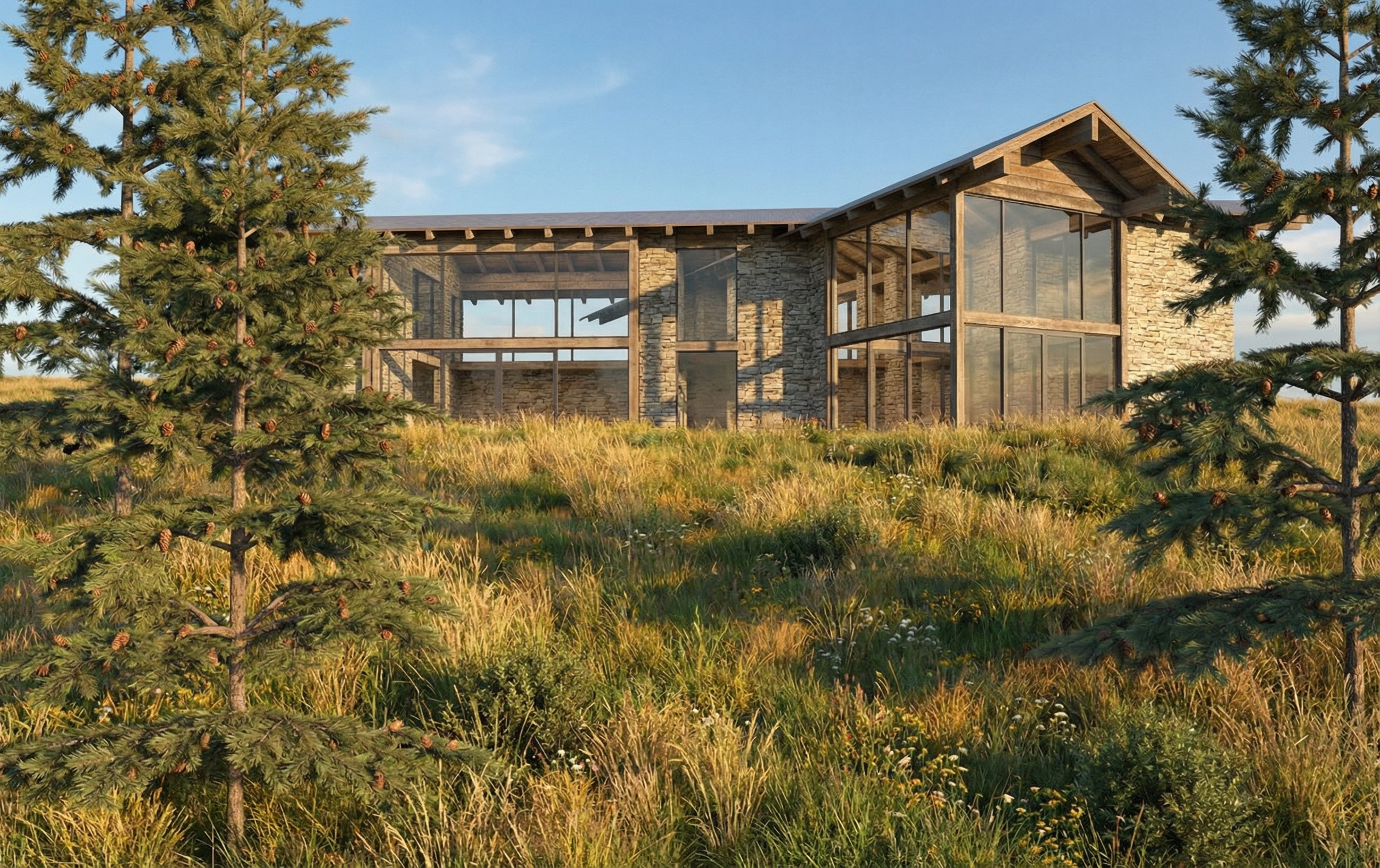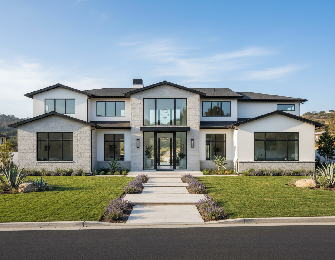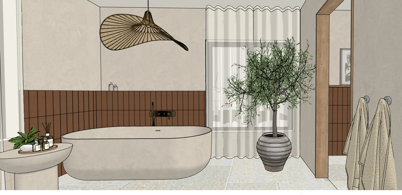 organic and luminous bathroom with stone tile floors in light beige