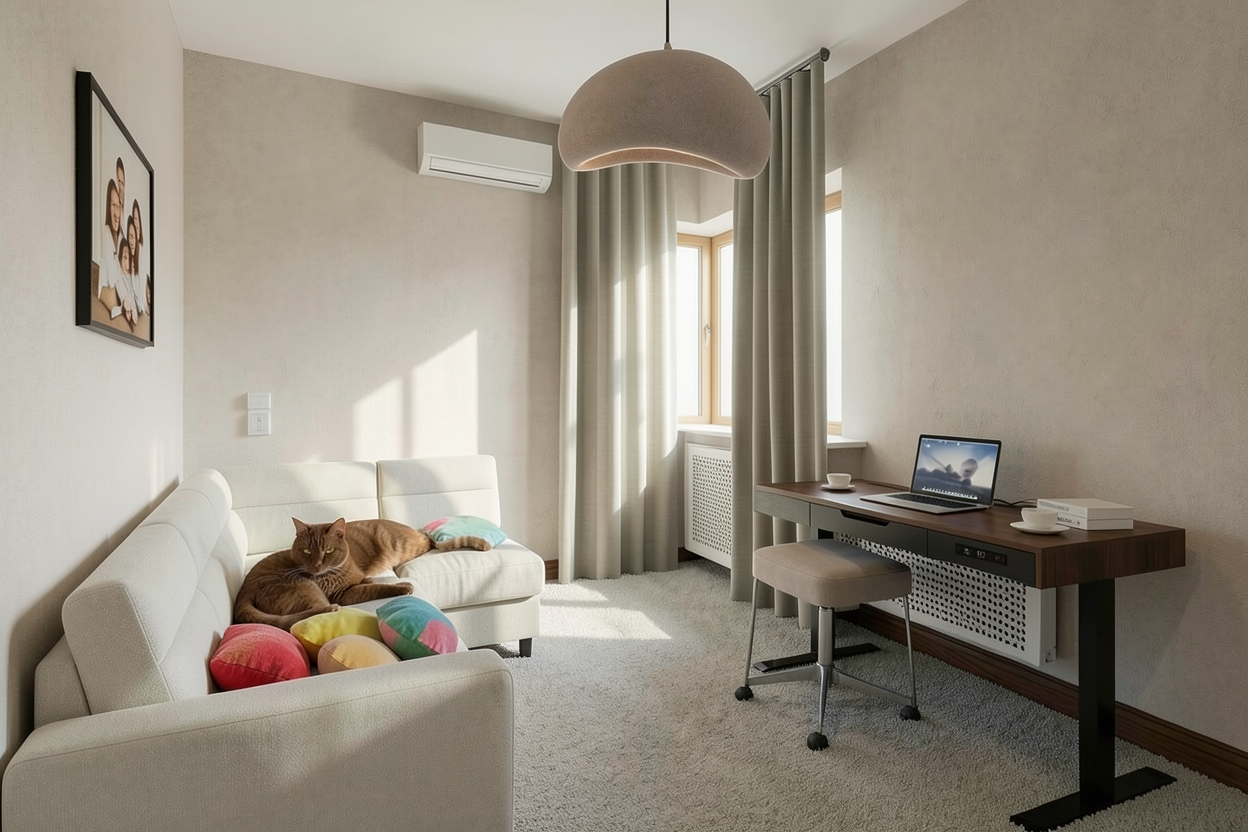 insert this built in into a home office with transitional design style keep the built in exactly how it s shown do not add any additional shelves or cabinets