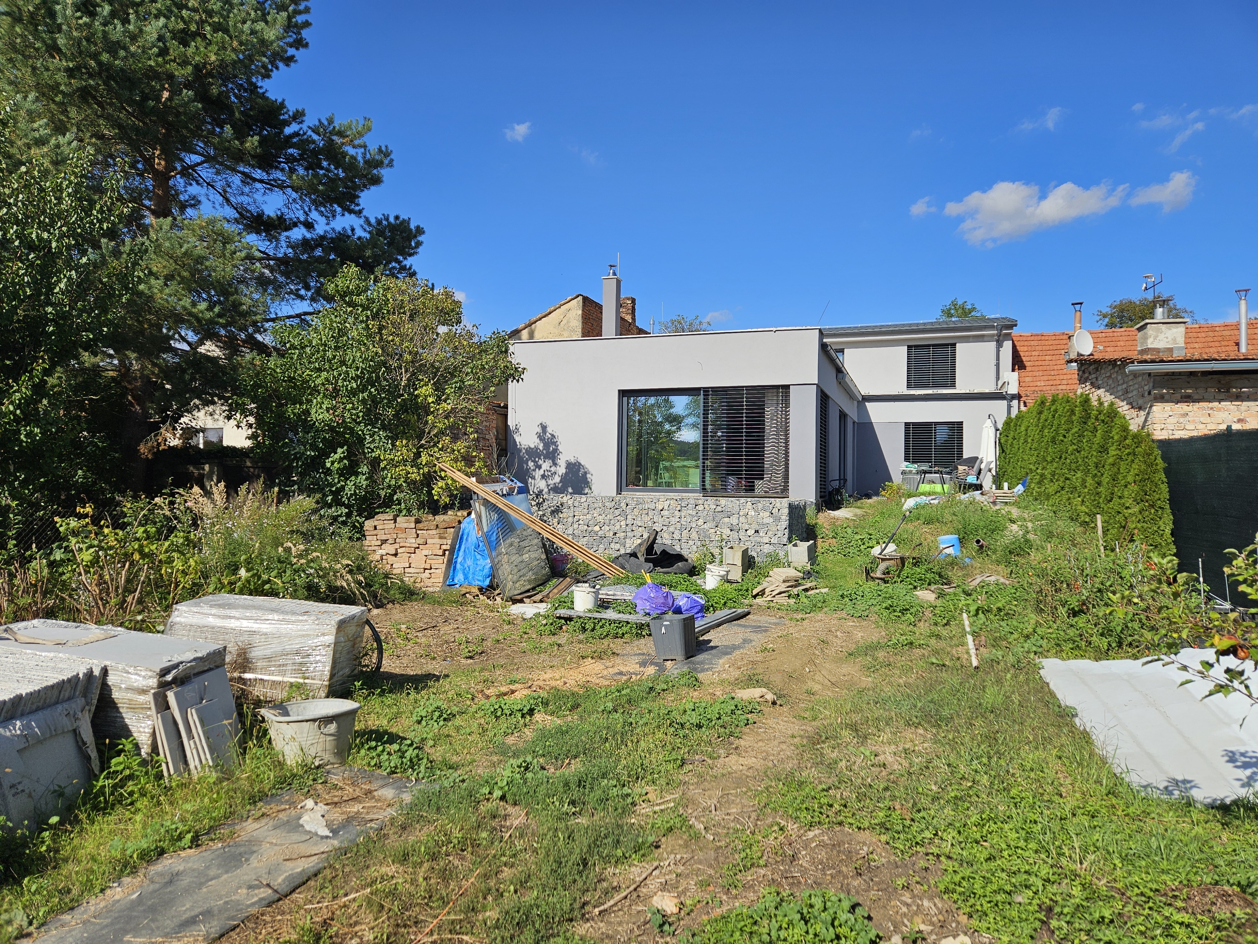 leave the house and the stone wall in front of the house unchanged to the right of the stone wall there will be stairs and a slope in front of the stone wall make a small pond bordered with stones and tall grasses and reeds by it the rest of the garden will be mowed grass
