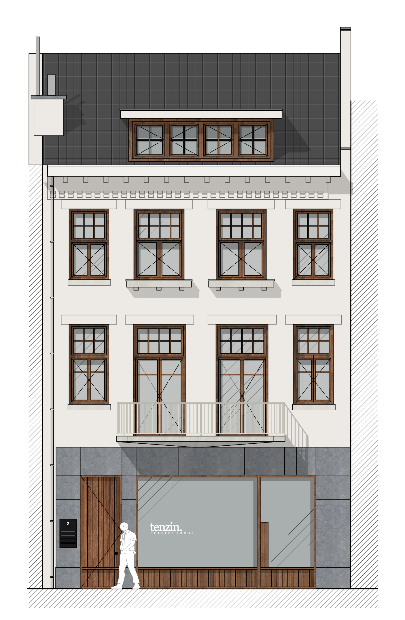 generate a realistic 3d architectural model based on the provided 2d elevation drawing use the context of a modern dutch building located at moseaforum 2 in maastricht maintain accurate proportions window placements fa ade materials and structural details from the 2d drawing render the 3d model with natural daylight neutral shadows and realistic materials such as brick concrete and glass commonly used in the region output high resolution exterior 3d