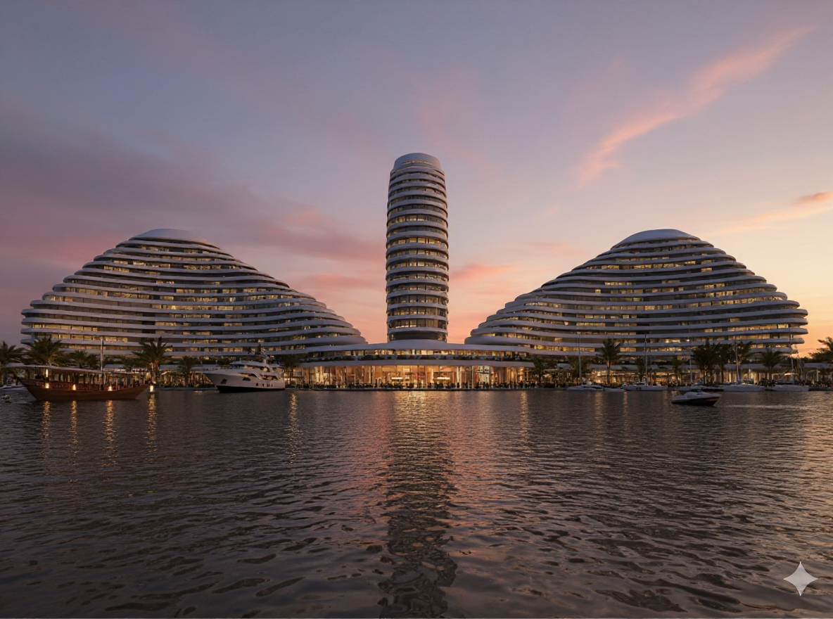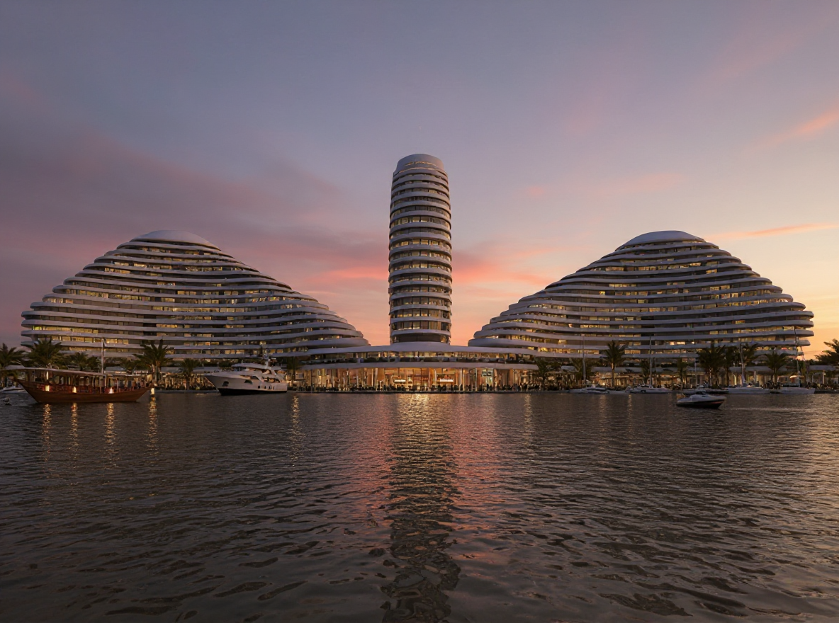 new urbanism exterior shot stationnement en avant plan revetement murale blanc et foret a l arriere architecture