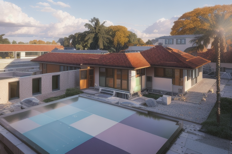 make the facade a colorful gradient and add glass render the road and surrounding buildings differnet shades of gray architecture