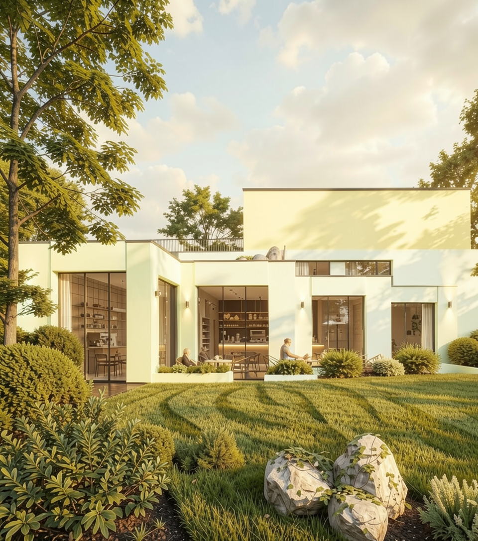 aggiungi fiori aggiungi persone aggiungi luci interne metti tramonto aggiungi arredo giardino