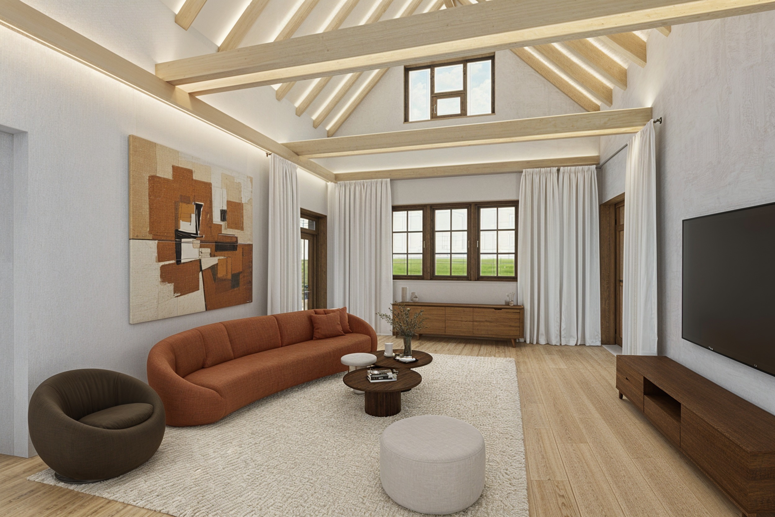 modernist interior shot keep everything as it is remove only curtains architecture