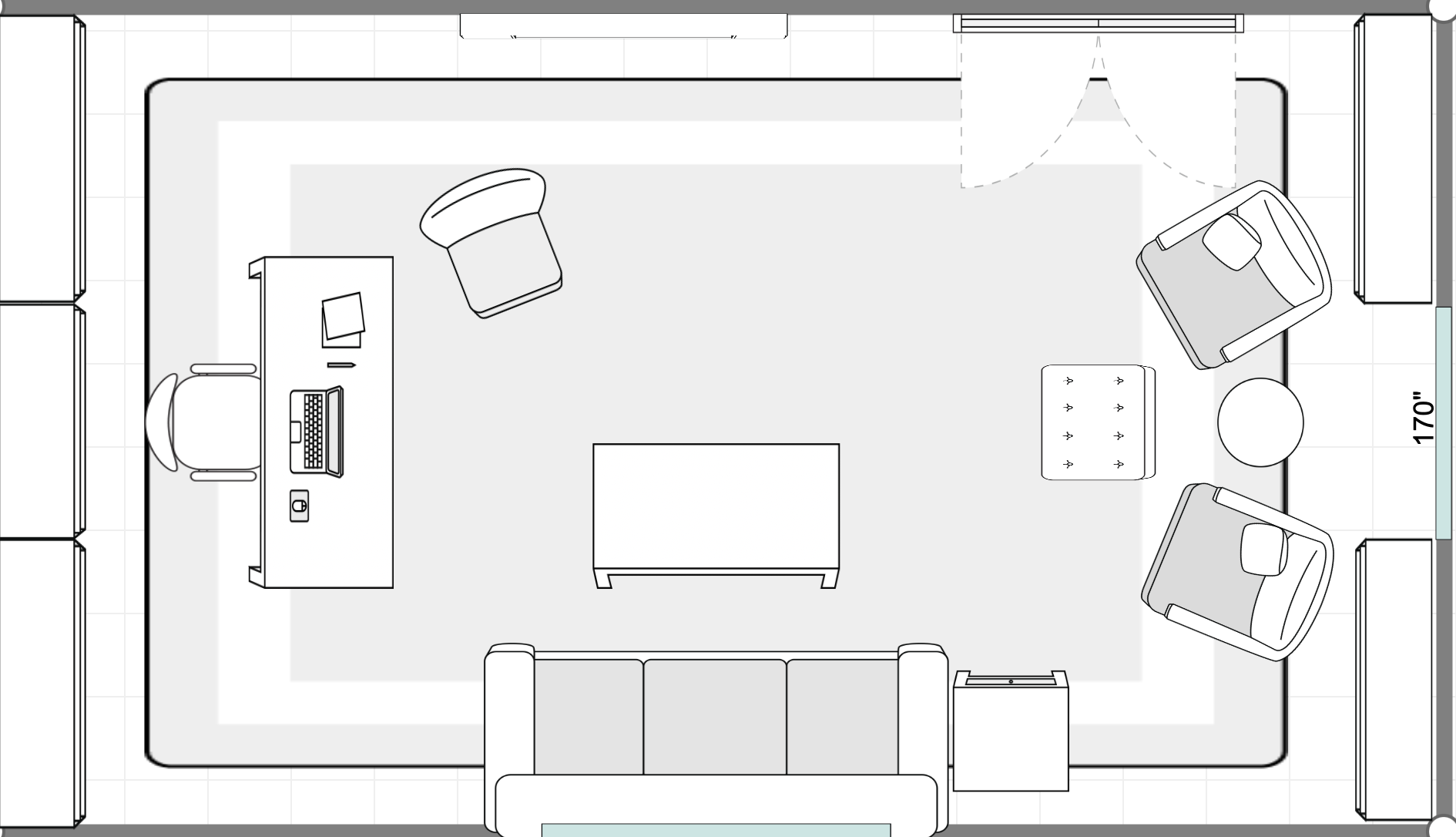 convert this floor plan into a realistic isometric 3d view of a full house show the space from an elevated angle with furniture walls and details visible wood flooring should be varied width oak flooring modern taupe rug with sofa in slate blue velvet and chairs in taupe holly hunt modern furniture use the same furniture as shows on the plan do not change the orientation of the floorplan