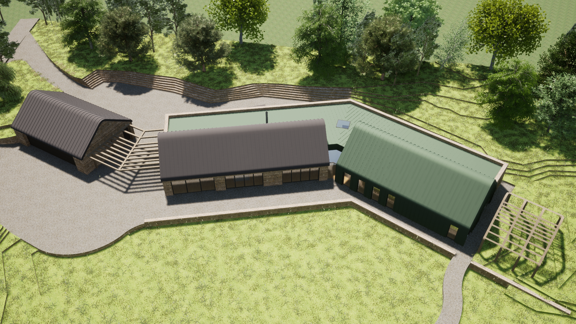 contemporary exterior shot contemporary cotswold stone house with copper standing seam roof hyper realistic architecture