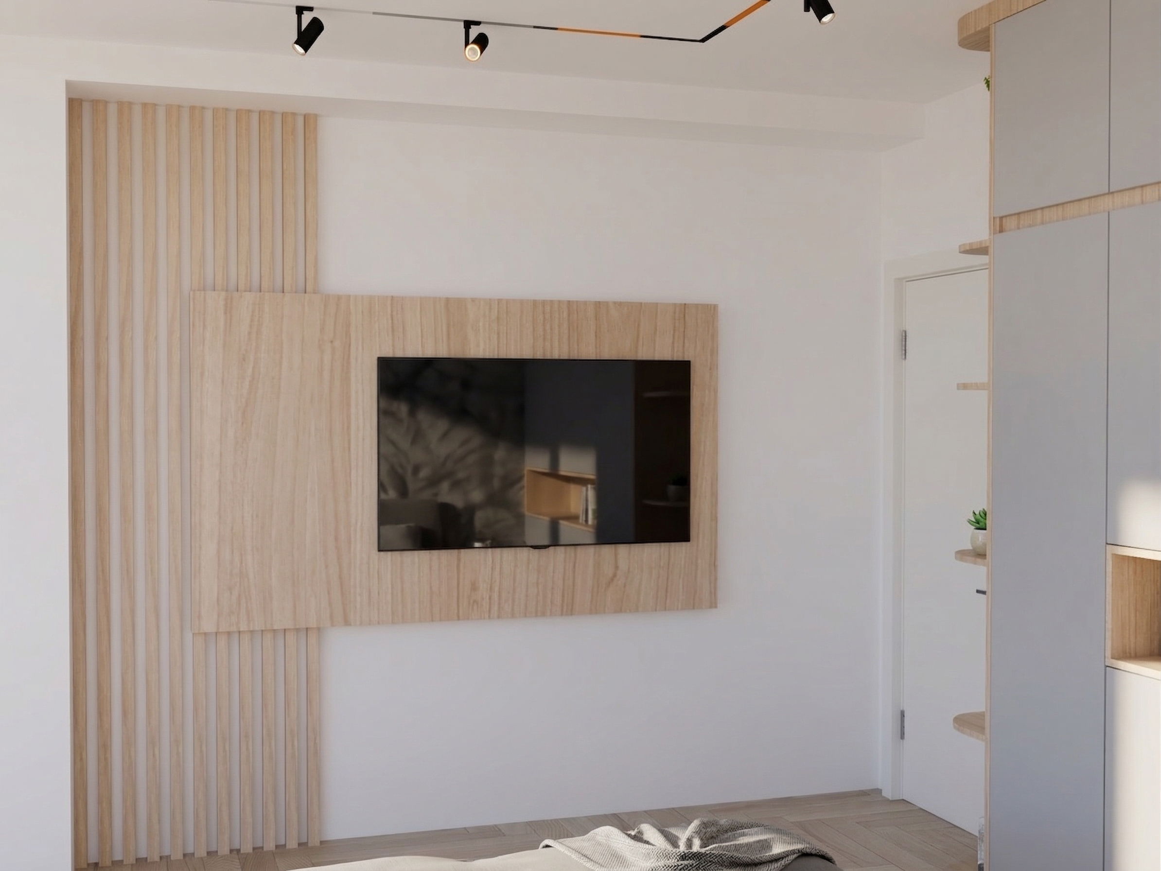 inserire due letti singoli colo grigio mantenendo tutti gli arredi esistenti
