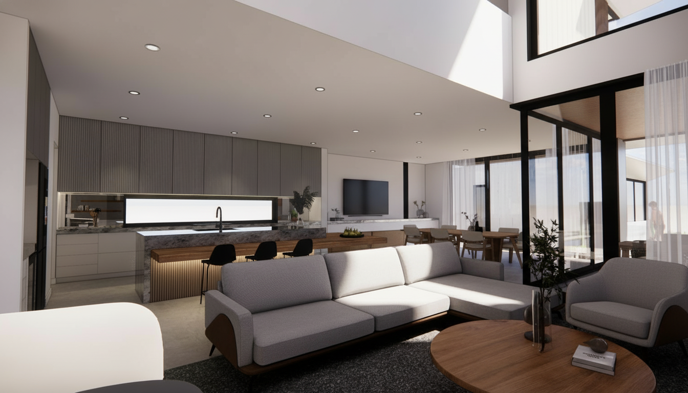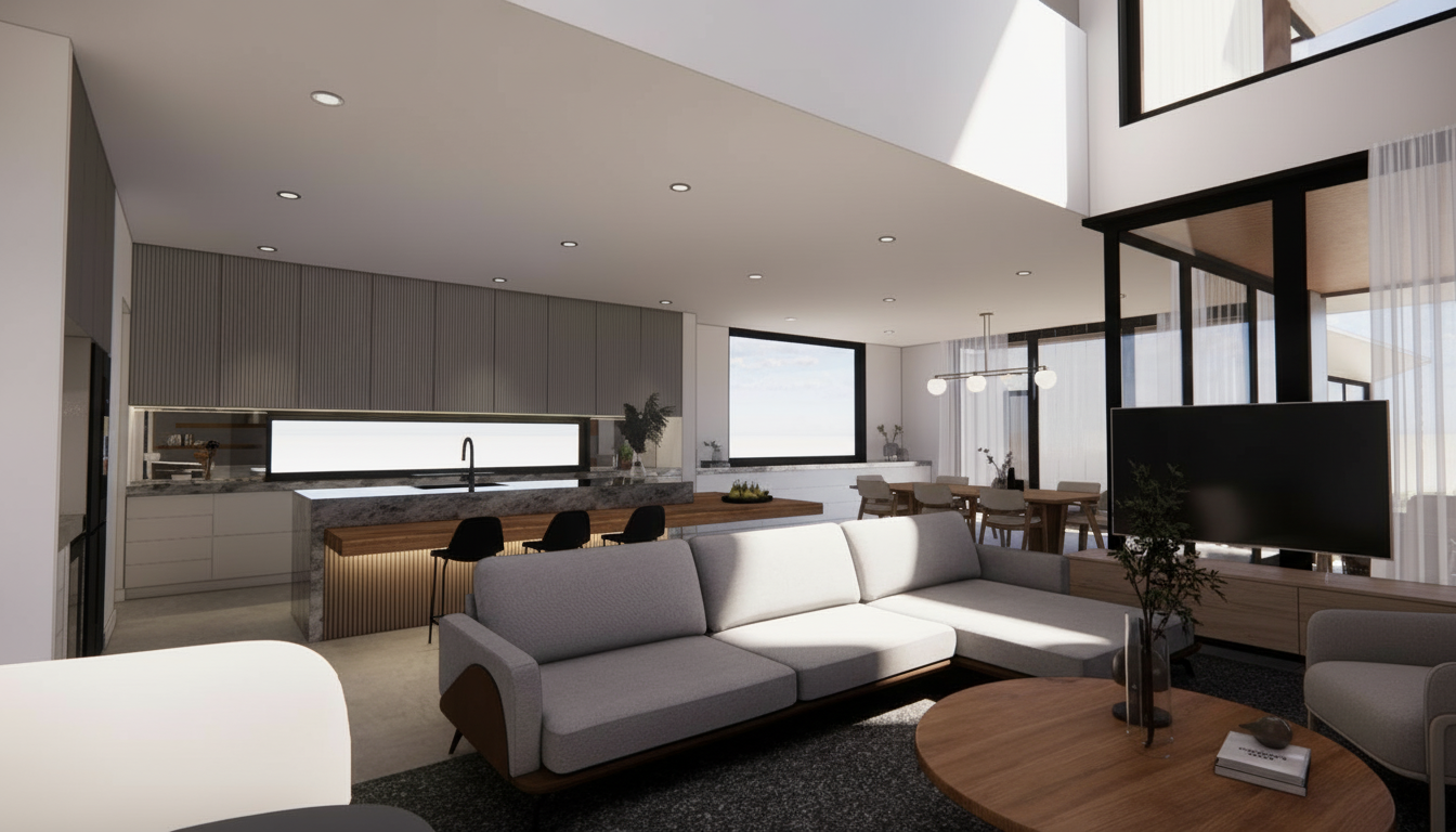space is evenly lit down lights on white light 5000k lighting temperature interior photography realistic slightly reflective