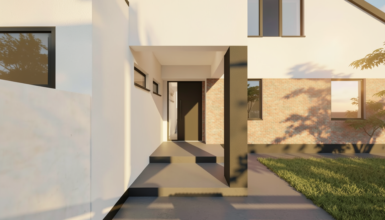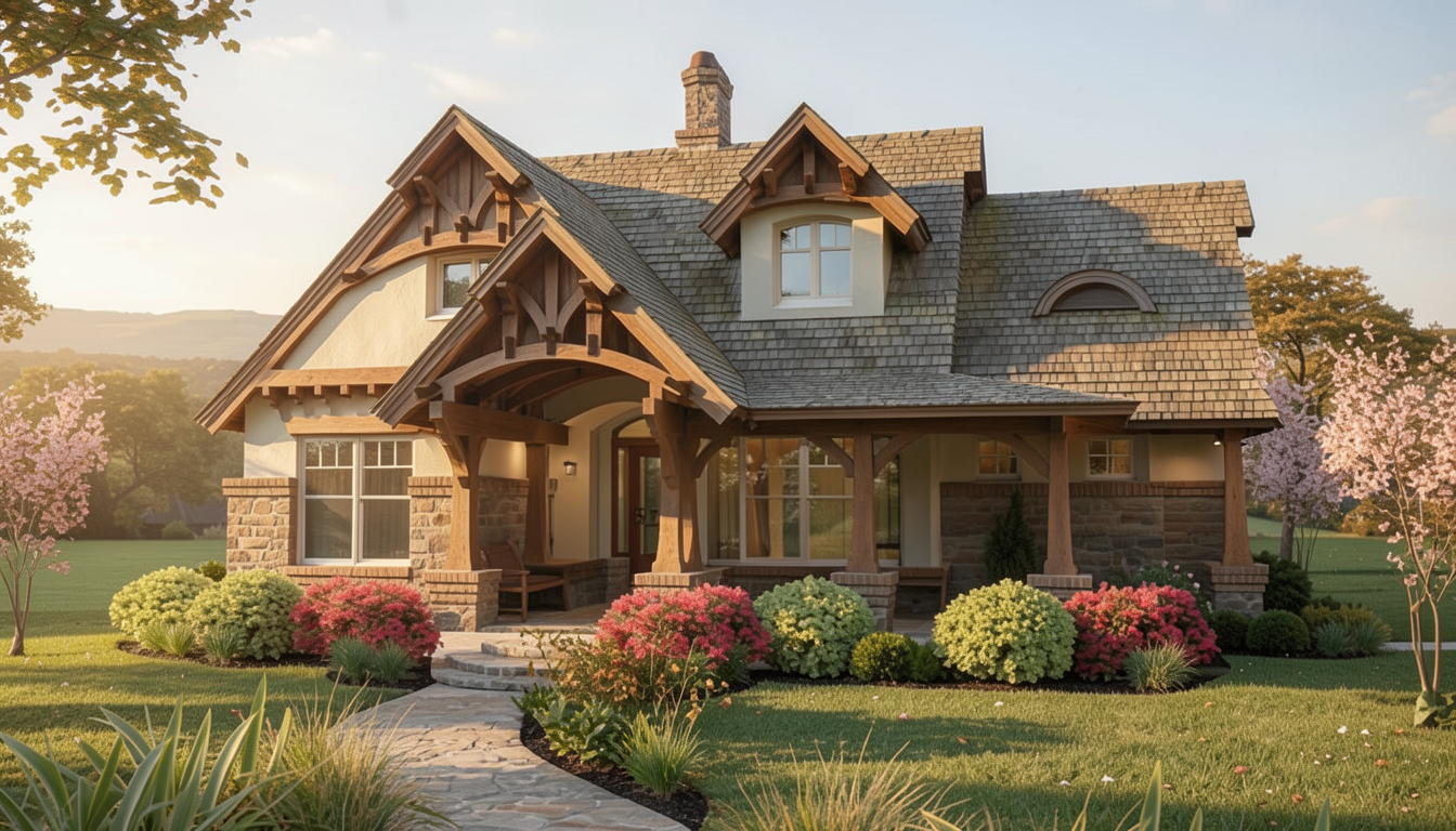 enhance the realism of the existing architectural design while maintaining the same materials and textures focus on realistic lighting shadows and surface details to create a lifelike appearance ensure the mixture of wood siding is preserved in the correct areas making them look authentic and cohesive so keep the horizontal siding and vertical siding the same as reference photo but change texture and color this is in montana add montana landscape but nice landscaping near the house add montana vegetation around house make horizontal siding canyon by diamond kote make all trim around doors and windows trim at bottom of house and fascia diamond kote onyx color make board and batten diamond kote color coffee make all wood stain sherwin williams charwood make rock like a stacked mountain modern style rock make nice landscaping in foreground do not add chimney do not add rock to walls