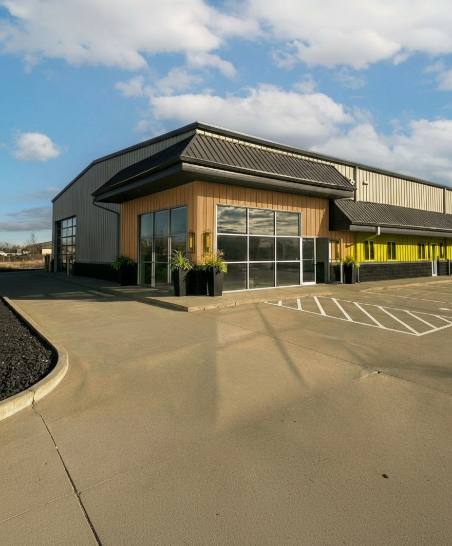 turn the attached watercolor sketch into a photoreal rendering of the house keep geometry massing window placement and details the same high fidelity and representation is important this should be a dusk golden hour rendering of the house keep sufficient ambient lighting to show details and windows need to produce realistic warm glow from interior add wall washing lights along the overhangs and inside the porach the angle of this photo slopes uphill up to the house and include a sloped driveway up to the garage door making the gray siding on the left smooth not woodgrain