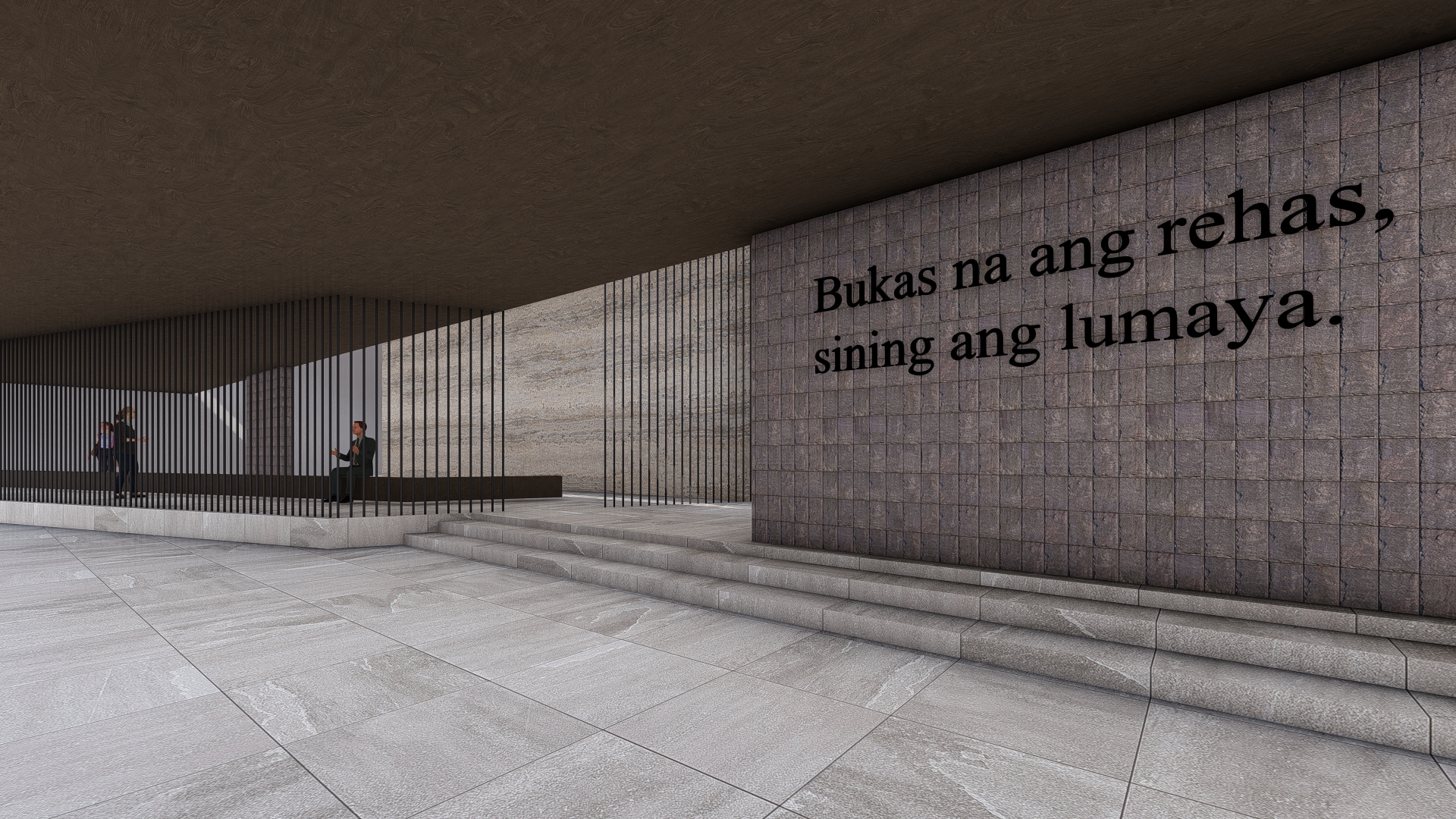 add ceiling lighting don t use cove lighting just use ceiling light spotlight and mood light do not change the textures in the model do not change anything in the model add entourage to give a museum vibe in the render