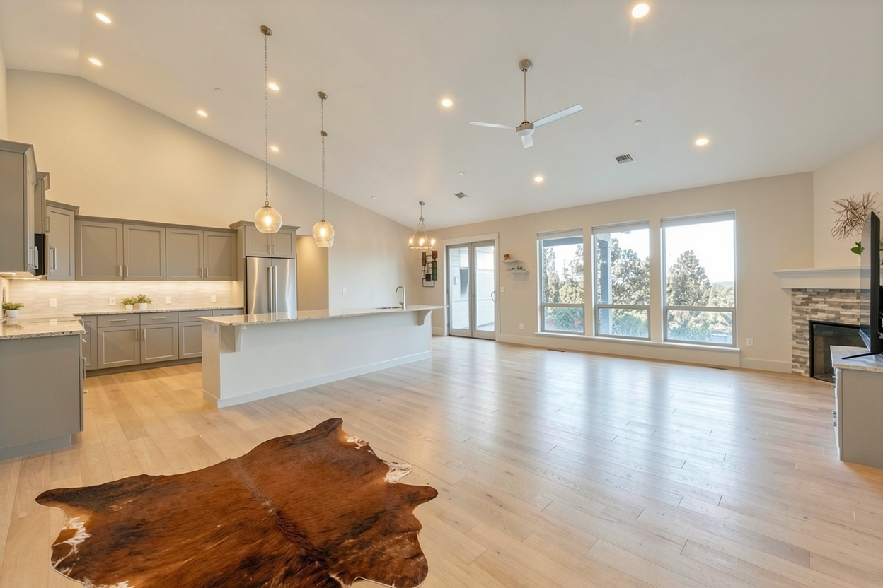make the rendering more realistic keep the colours add objects on the shelves keep the texture of floor but make it brighter like light white oak herringbone hardwood