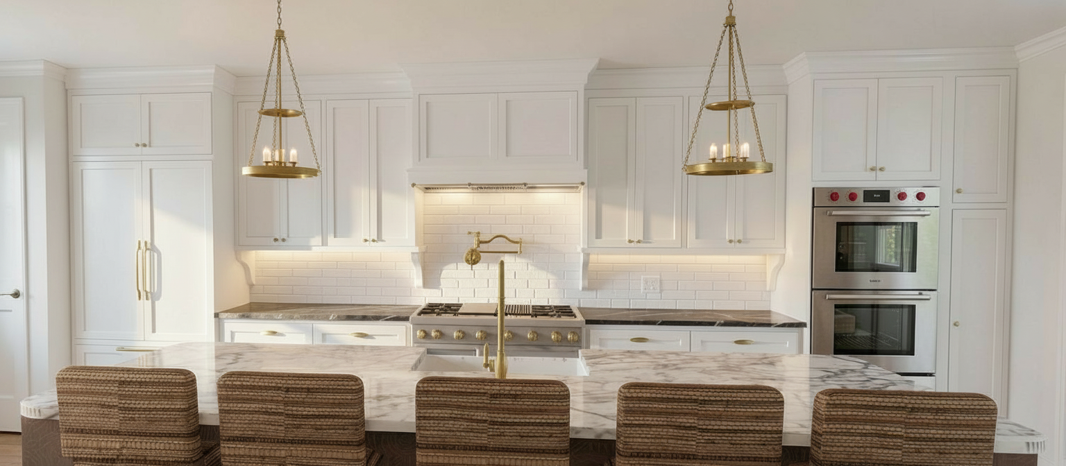 remove under cabinet lighting but keep the white brick backsplash