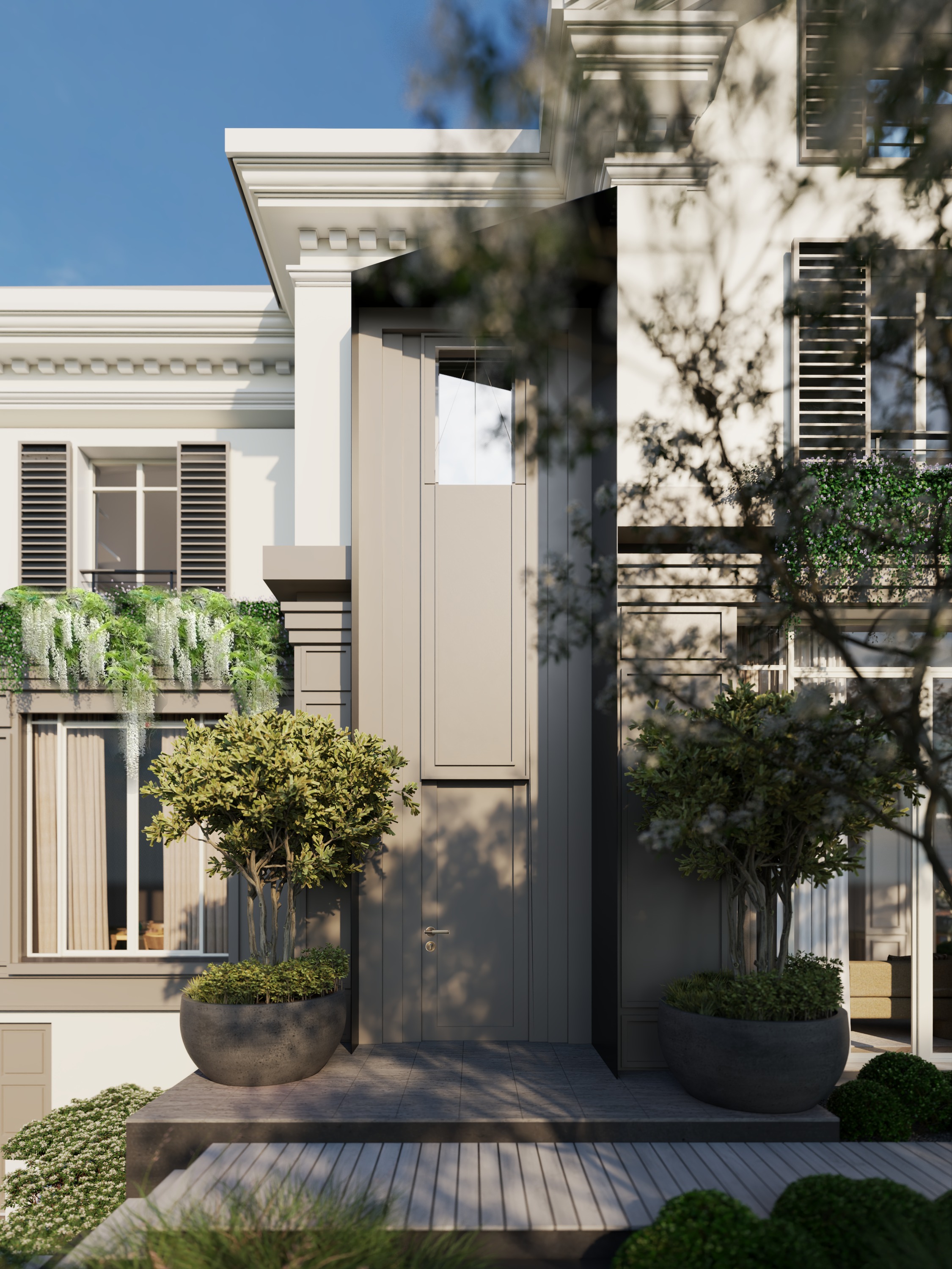 enhance the realistic texture and morning lighting maintain the elements material and angle of the picture make the wisteria plants behind the trees