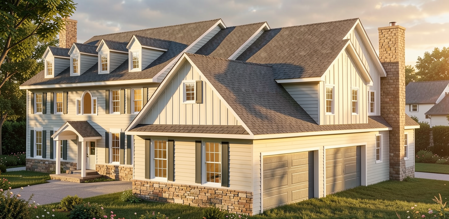 add driveway on rt side white garage doors wood front door