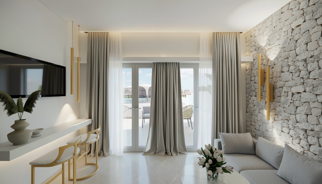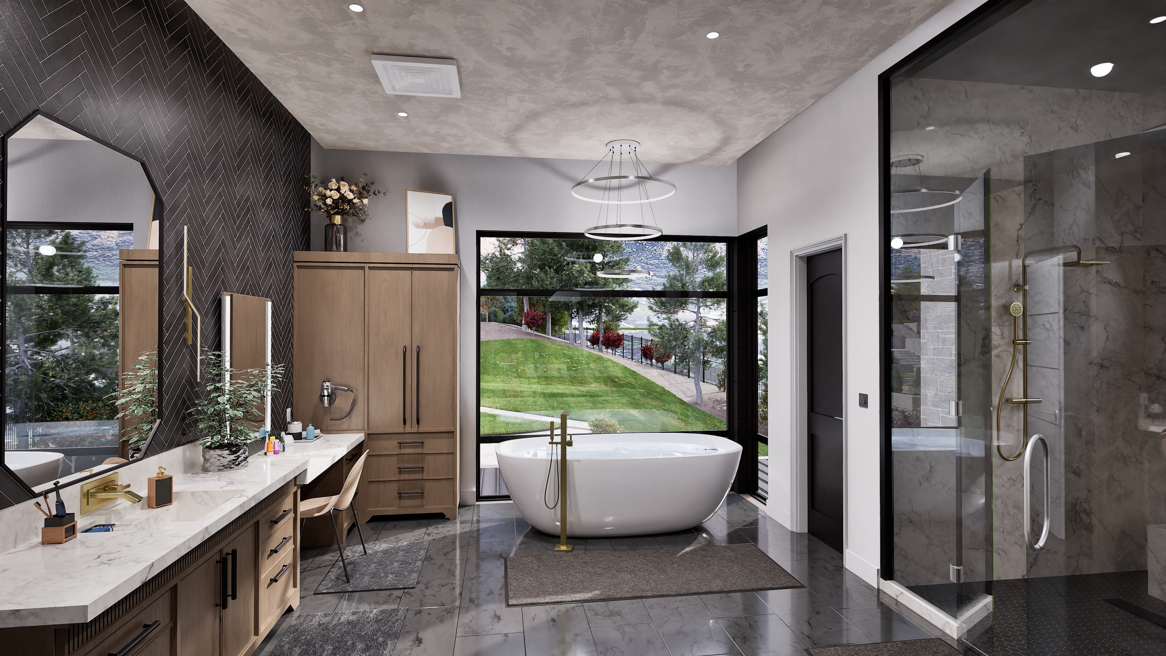 don t change the structure make the image feel photorealistic in texture lighting and shadows enhance the grass on the exterior and add additional bushes flowers and trees make the vegetation feel photorealistic and natural