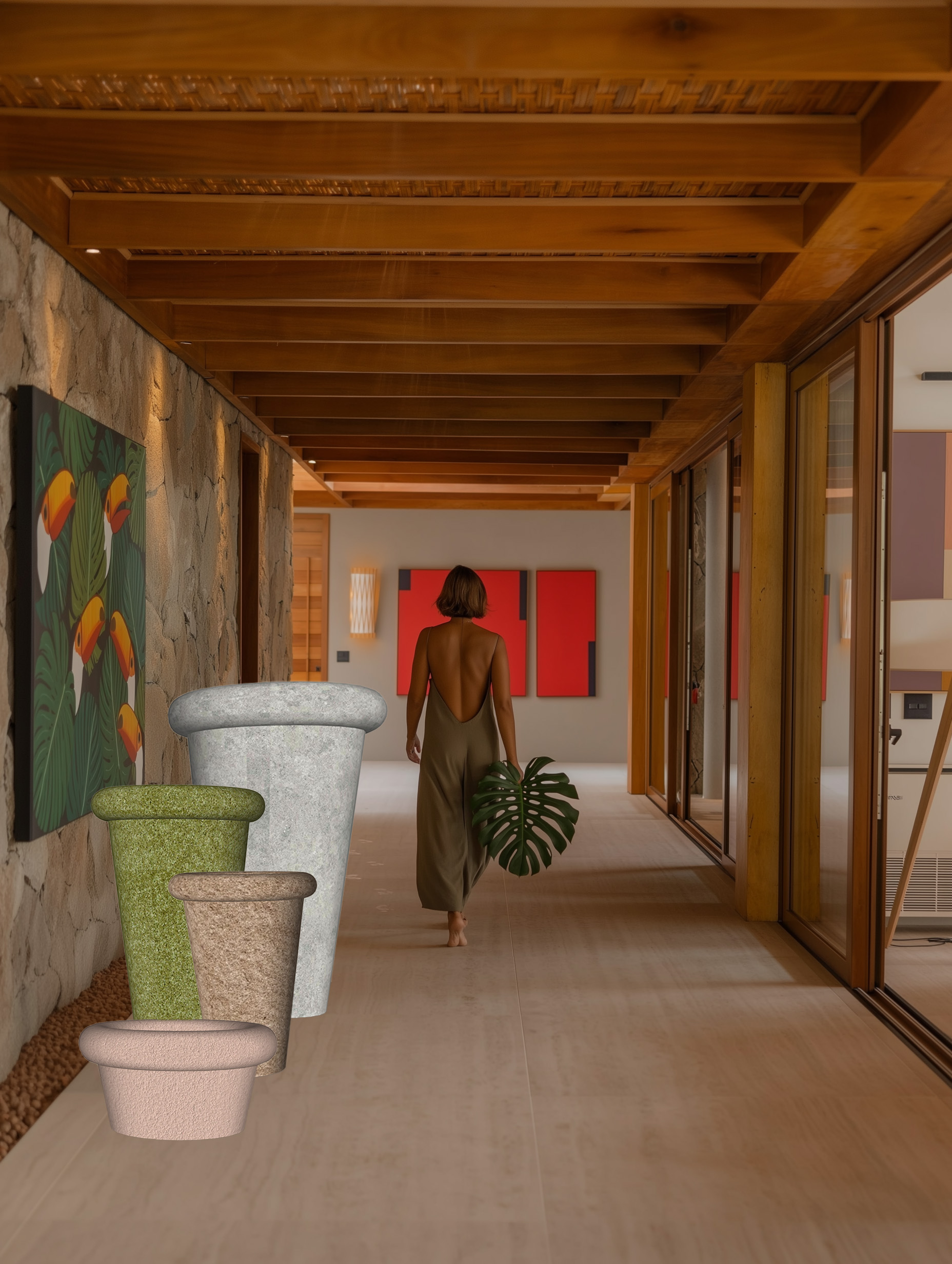 blend the look into more photorealistic view add vegetation on the pots