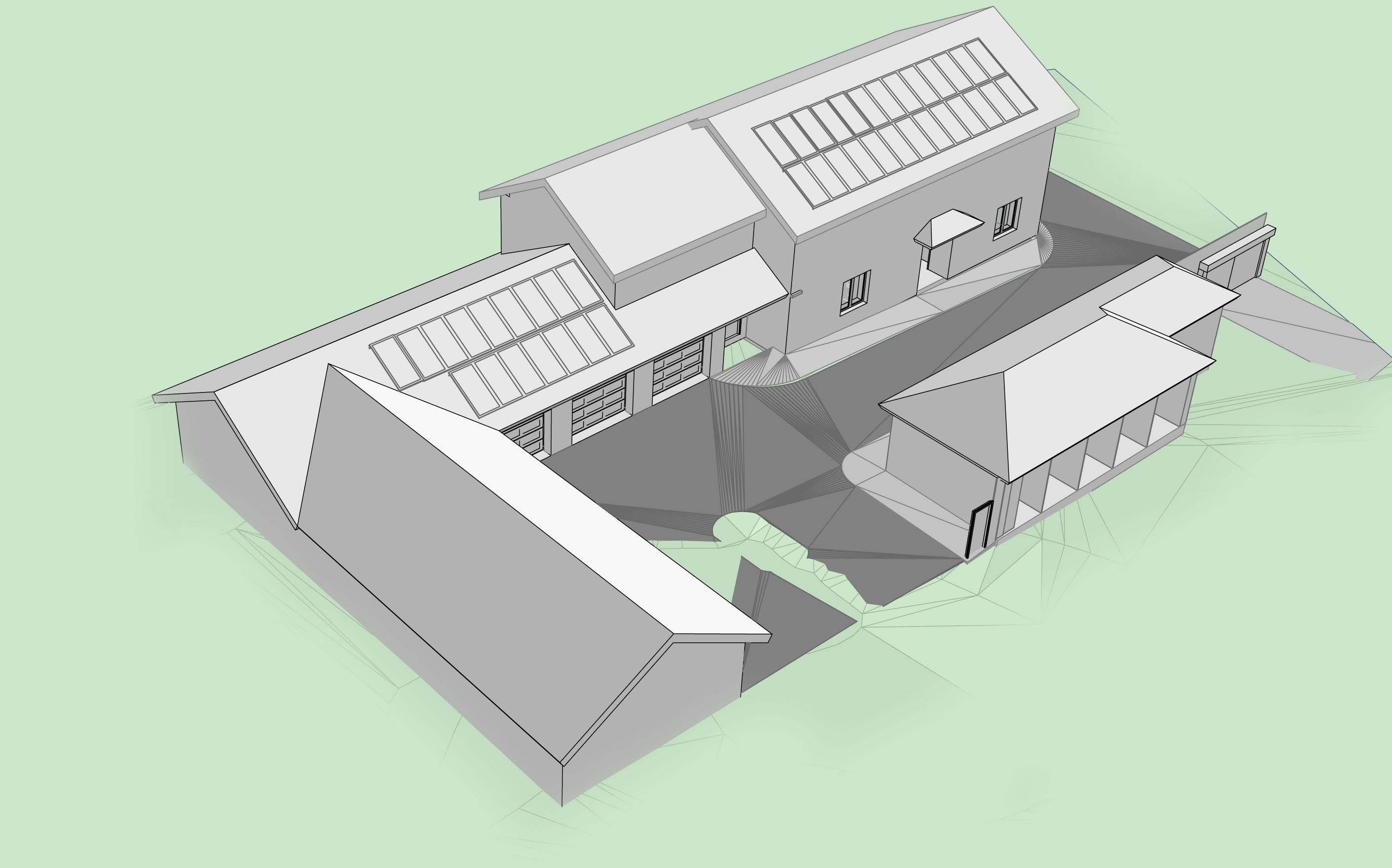 create a photorealistic architectural visualization based on the provided image preserve the building s geometry shape proportions window placement and all elements without any changes do not modify the architecture and do not add or remove any structural elements enhance only the visual aspects materials glass plaster decorative stone lighting shadows reflections environment pine trees grass and high quality textures style rrovance architectural visualization photorealism soft lighting high detail 4k