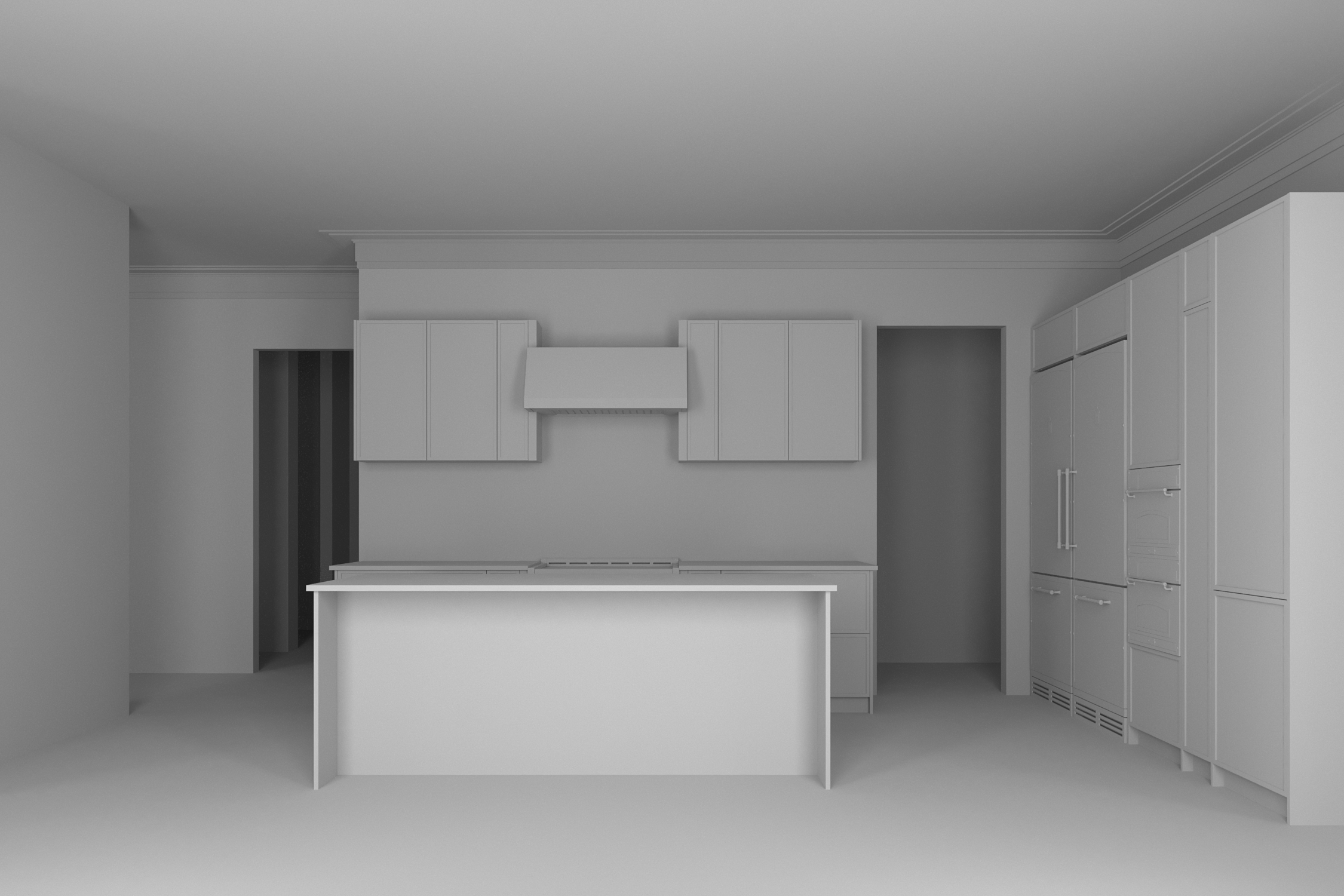 create a highly realistic image of the interior space and maintain the geometry modern scavolini kitchen soft lighting coming through show the pantry in the open door to the right add some soft white stools by the kitchen island