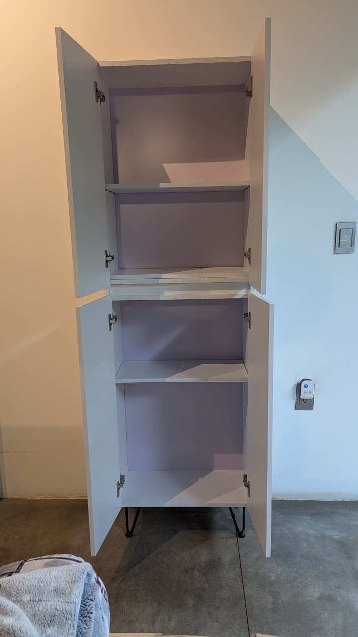 it s an independent pantry with shelves and organization spaces closed by doors and hiden pullers it is 1 80 meters high x 55 meters width x 28 meters depth