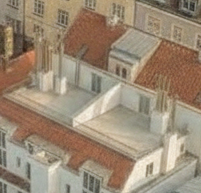 just change the pipes and crop them on the building sit on the same straight ridge configuration as shown in reference image 3 if necessary delete the current pipes and recreate them from scratch using reference image 3 as a direct template do not modify anything else match the exact proportions and alignment from reference image 3