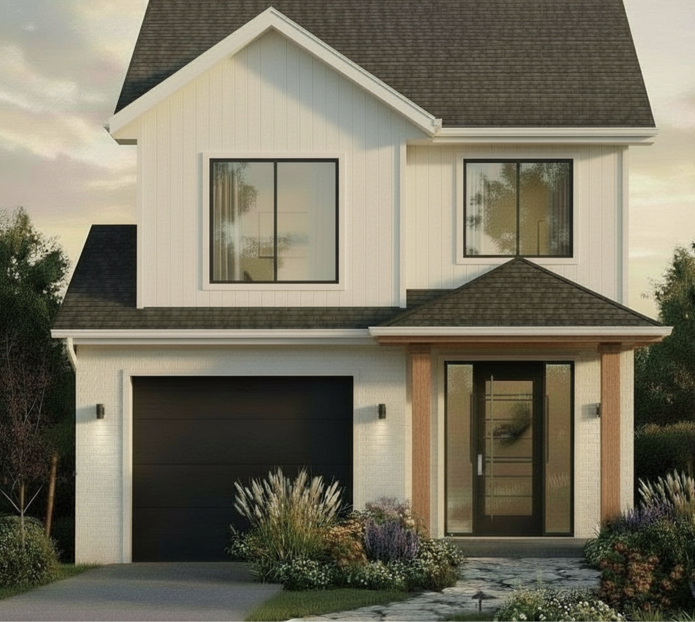 change paint color to bm pale oak add modern stained entry door and make the posts match