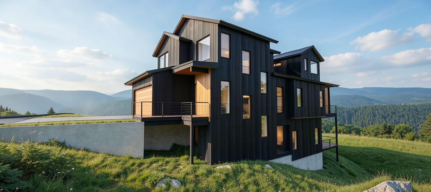 warm late afternoon lighting leather couch creamy concrete look tiles