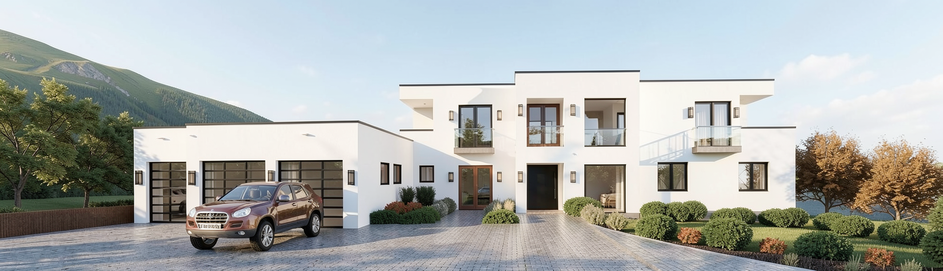 exterior white door and window frames black glass balcony railings