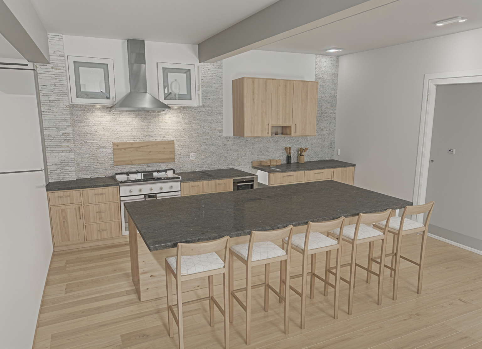 create a beautifully rendered image of a row of modern townhouses with a charming contemporary architectural design the center piece and the corners are a light gray stone and the other parts a different variation of white panels with sleek black accents the buildings have sharp angular rooftops and are crafted with sleek white facades the windows are large with black framing glossy light reflecting ambient light stairs and garage doors are deep black adding contrast and elegance there s a black band separating the base from the upper two floors the atmosphere is serene and inviting with a soft warm afternoon light gently illuminating the scene include subtle greenery around to enhance the liveliness show cars and people waling on the streets a kid in a bicycle and an old couple holding hands show some interior lighting coming form withing the apartments as well as both sides of the garage opening the center piece with a projecting tower is also the same stone material everything but the stone walls should be white there s no street in front of the building but a driveway leading to a road show cars parked white panel and gray stones