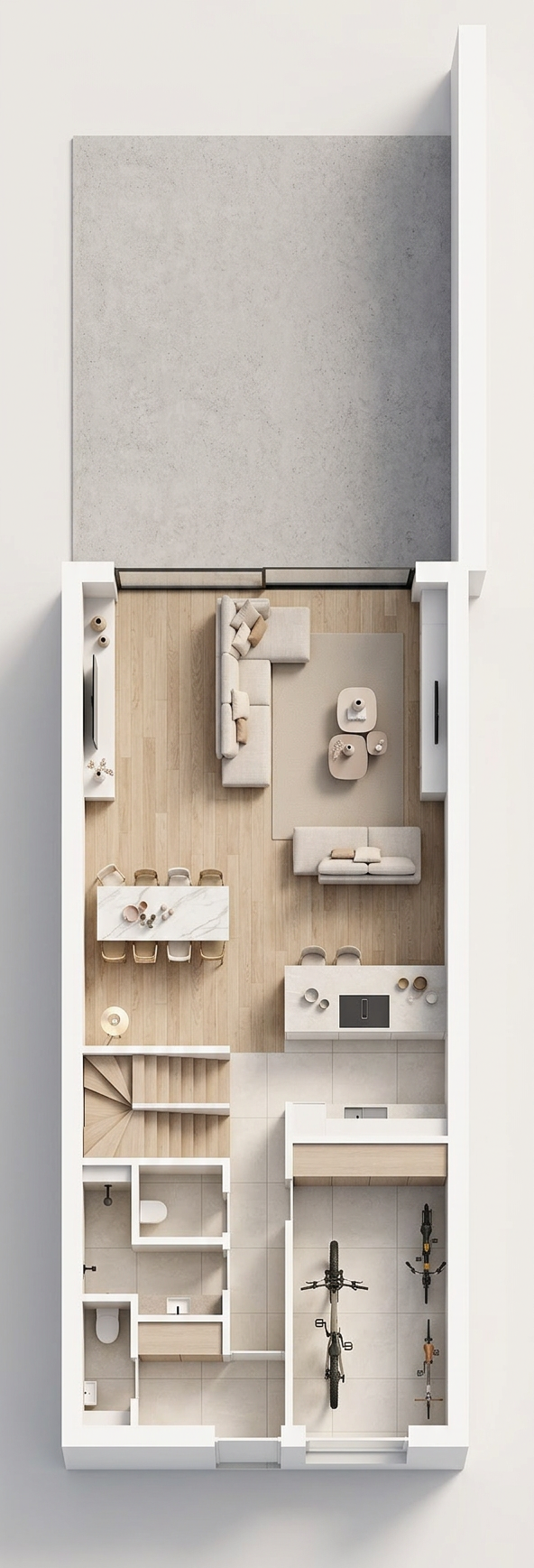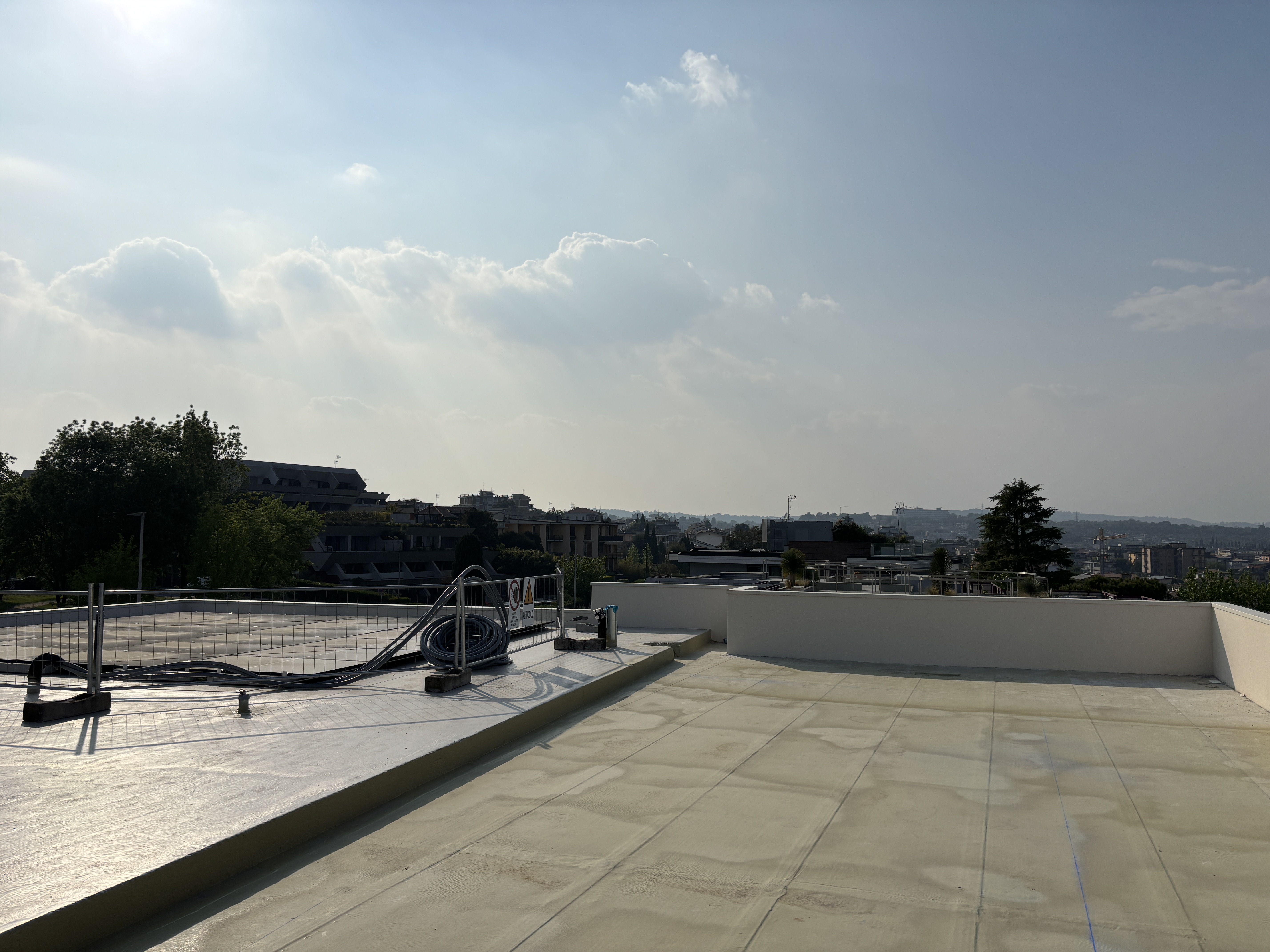 rendilo come se fosse un tramonto con colri neutri sole proviene da destra sobrio elimina le transenne a sinistra