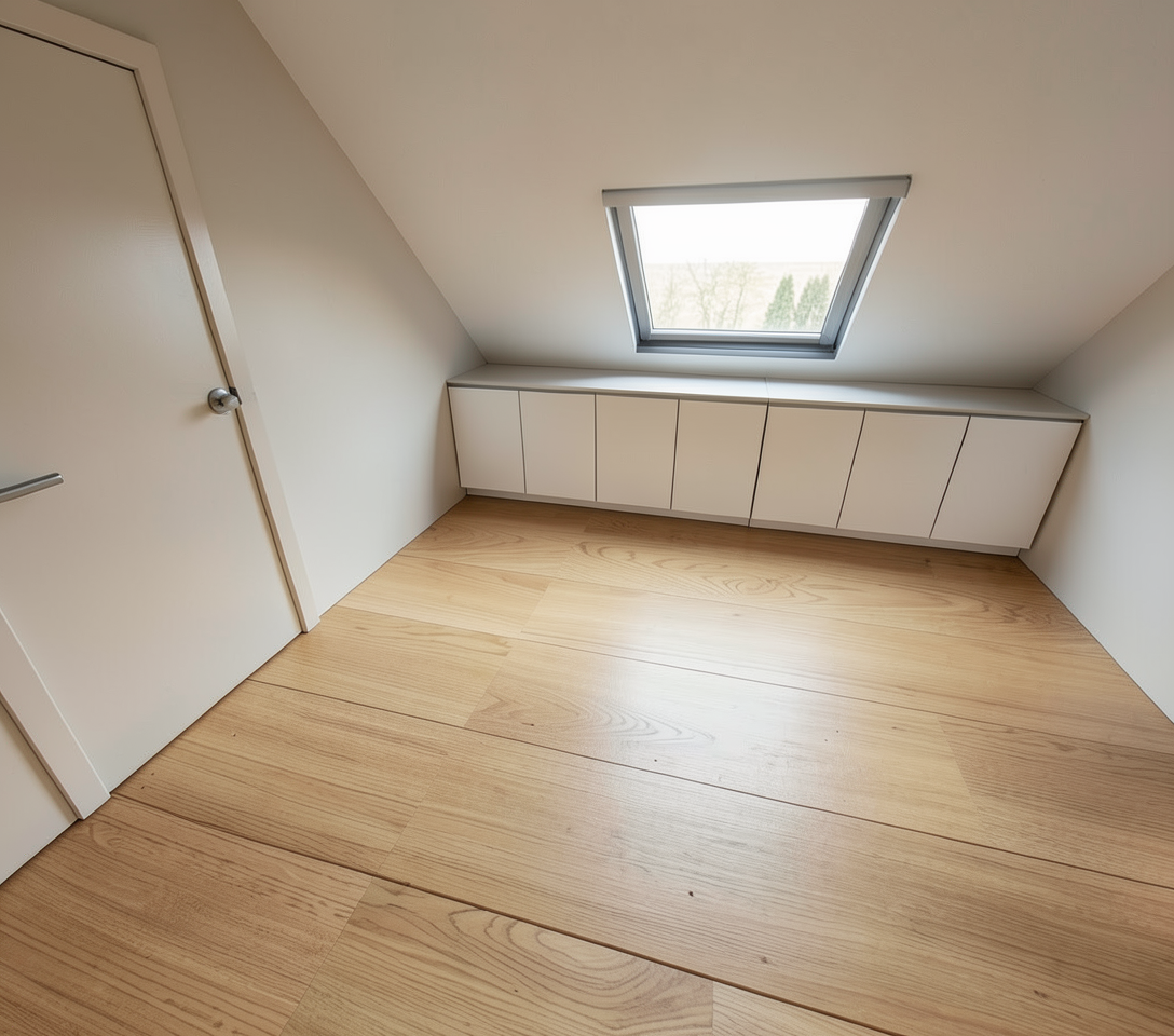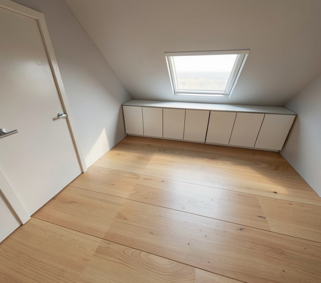 the floor is a light oak parquet with narrow planks make it photo realistic