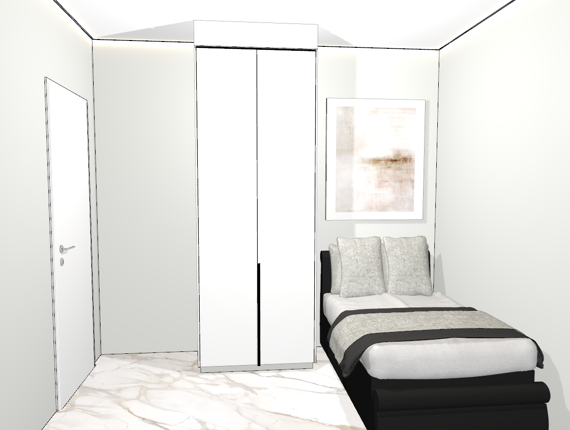 modernist interior shot render this satff bedroom with a soft feel light airy architecture