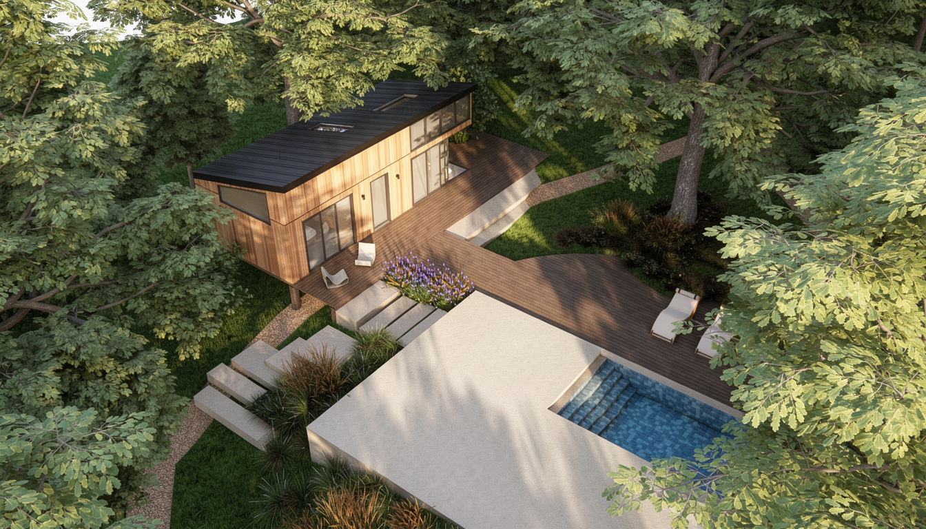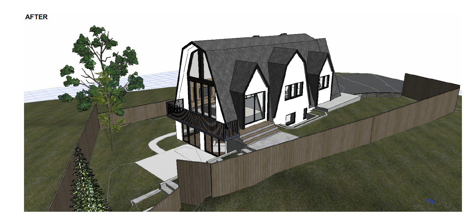 create a realistic version of this image remove all text and cad lines modern austrian chalet detailing wood siding