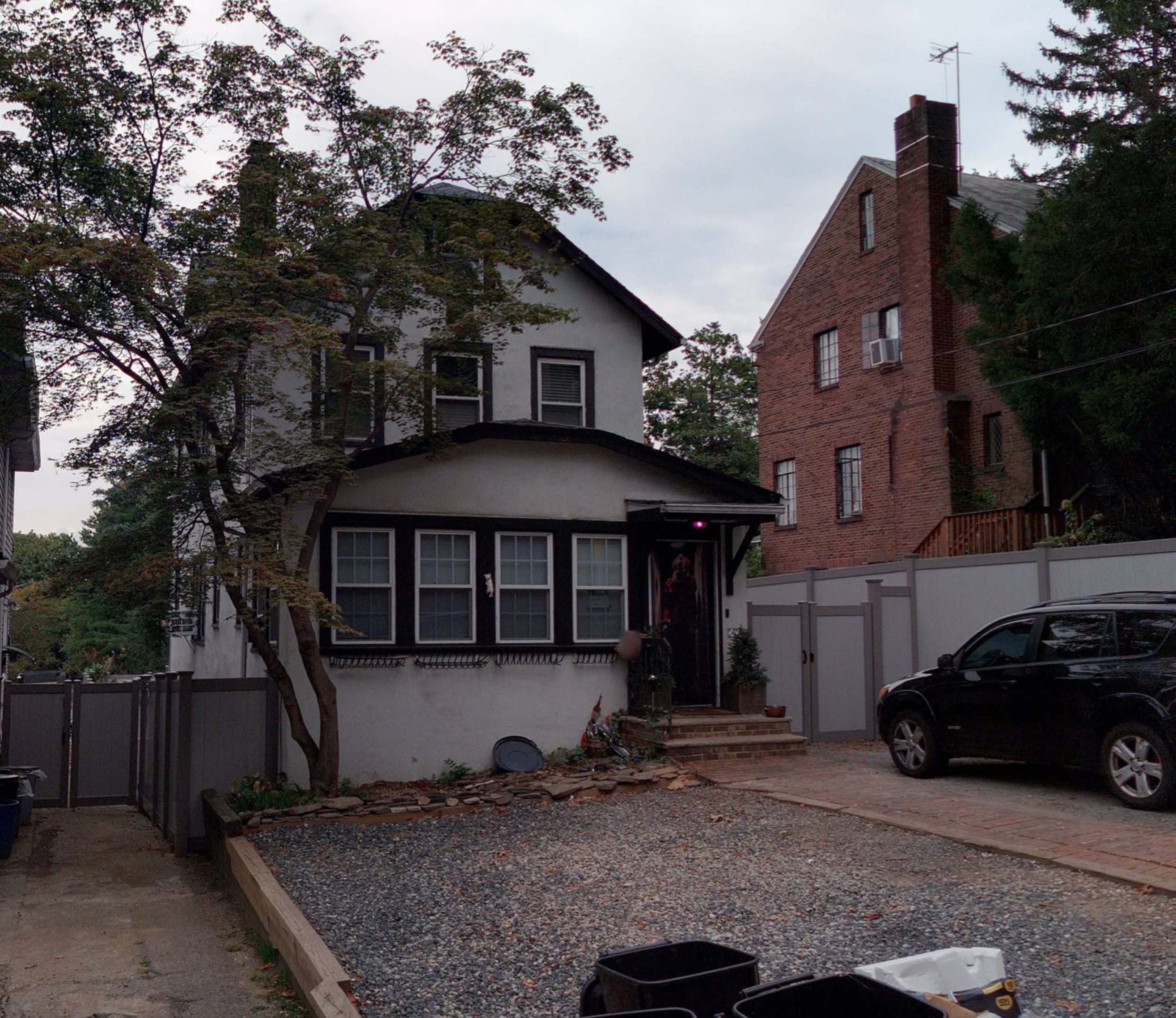 using the provided image of the existing residential home redesign the house into a zoning compliant r3 2 district residence in staten island nyc the design must strictly follow nyc zoning resolution for r3 2 districts including maximum building height of 35 feet from base plane perimeter walls limited to approximately 25 feet before transitioning into a sloped roof or setback third story to be incorporated within a pitched roof form not a full vertical third floor use a pitched roof envelope with a ridge line not exceeding 35 feet incorporate dormers on the front and or rear ade ensuring dormers do not exceed 50 of the street wall width maintain a residential scale consistent with staten island neighborhood character architectural design intent the house should read visually as a 2 5 story home not a full 3 story structure use a steeply pitched roof with well proportioned dormers to create functional attic living space maintain clean cohesive architectural language across all levels materials windows trim rooflines use high end residential materials such as fiber cement siding stone veneer base or clapboard siding incorporate large symmetrical or well balanced window openings for natural light ensure the design looks like a natural evolution of the existing house not an addition optional enhancements rear full width shed dormer for maximum usable interior space gable or eyebrow dormers at the front for curb appeal subtle modern traditional hybrid aesthetic clean lines but residential warmth the final image should feel like a high end staten island home that is fully compliant with nyc zoning elegant and architecturally cohesive