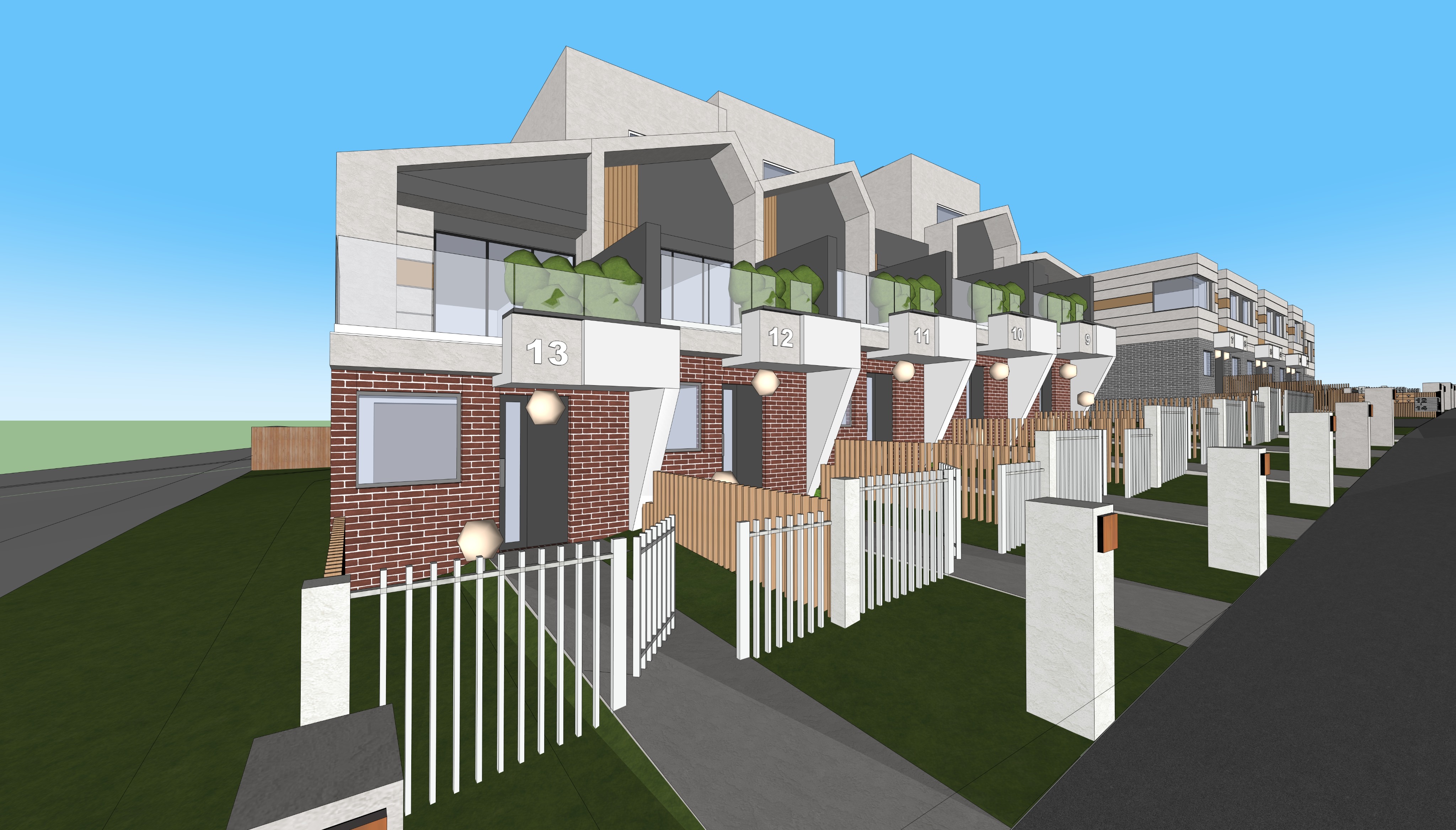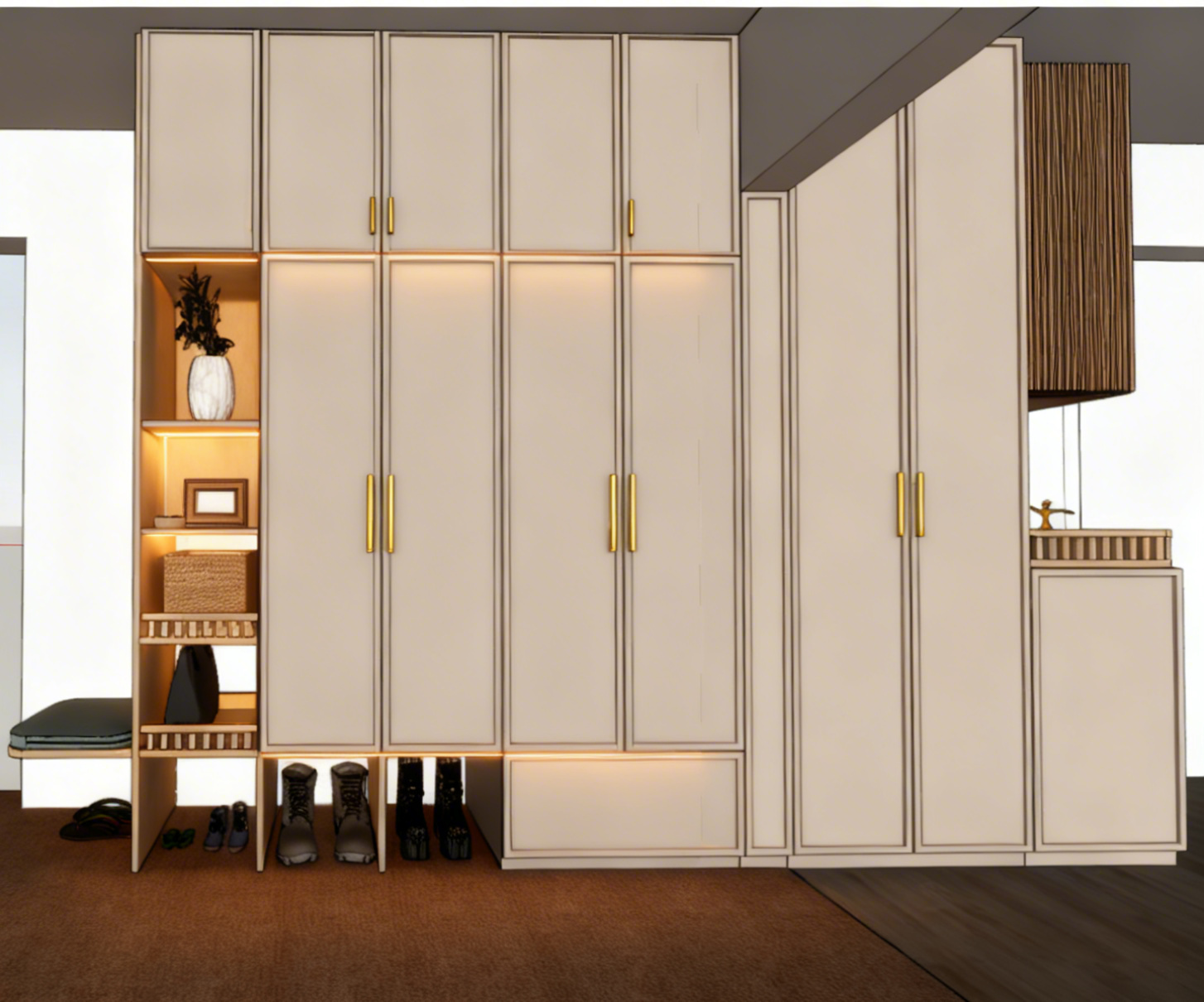 commercial architectural visualization cinematic lighting effect 3d perspective surrounded with brushes