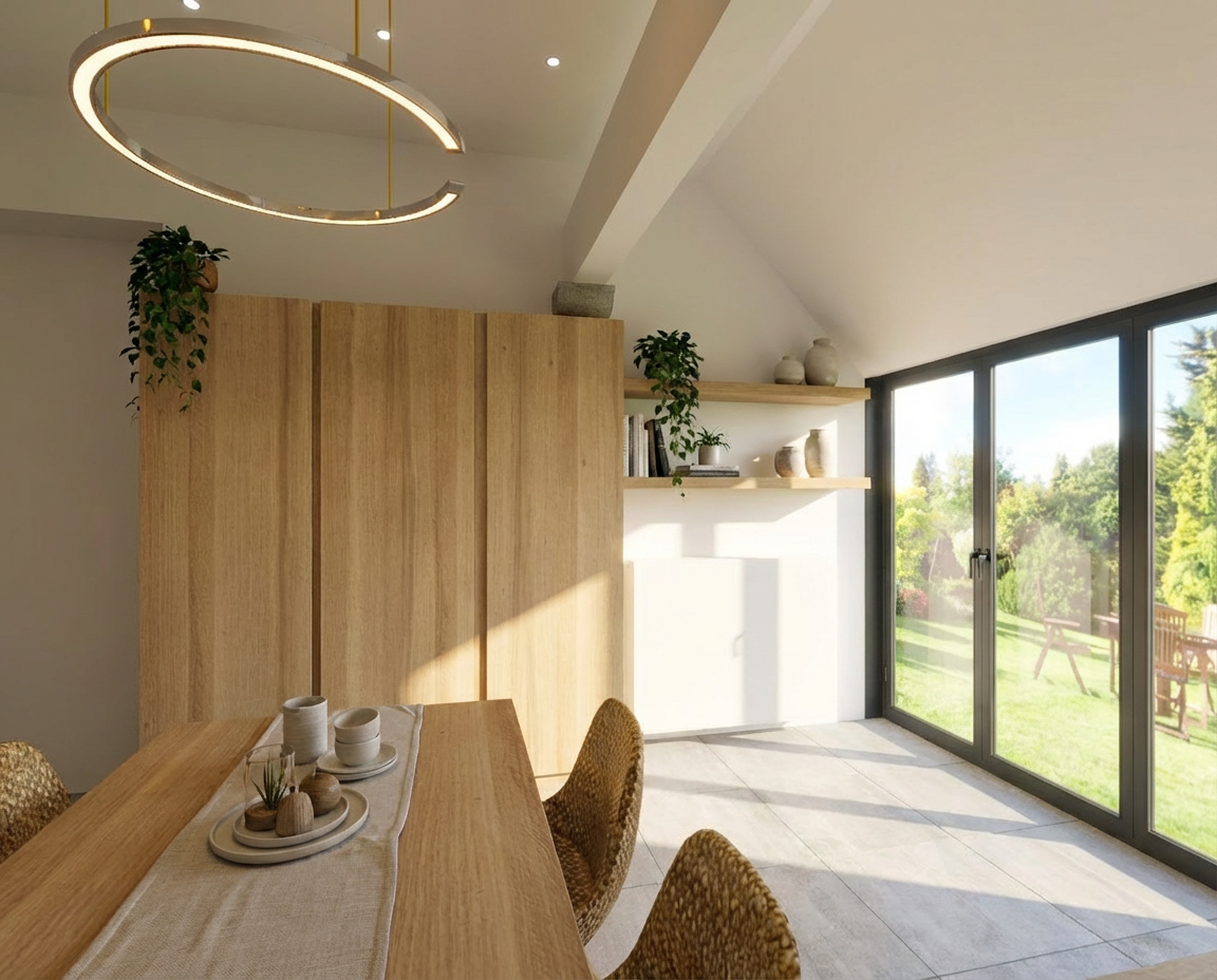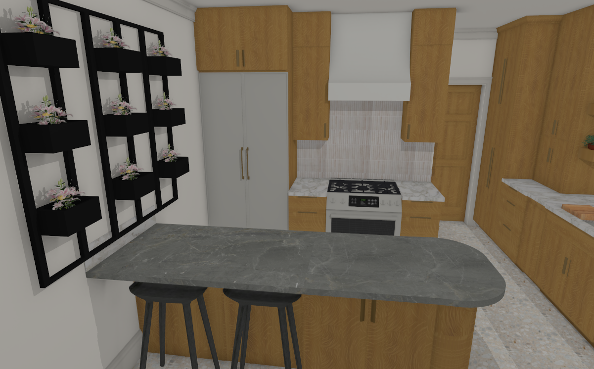 maintain the exact layout dimensions and placement of all elements do not change materials colors or geometry additionally apply a very subtle hand drawn architectural sketch overlay faint pencil line edges around furniture silhouettes cabinetry and key architectural elements as if barely sketched over the photograph keep it extremely subtle the photorealistic image must remain fully dominant