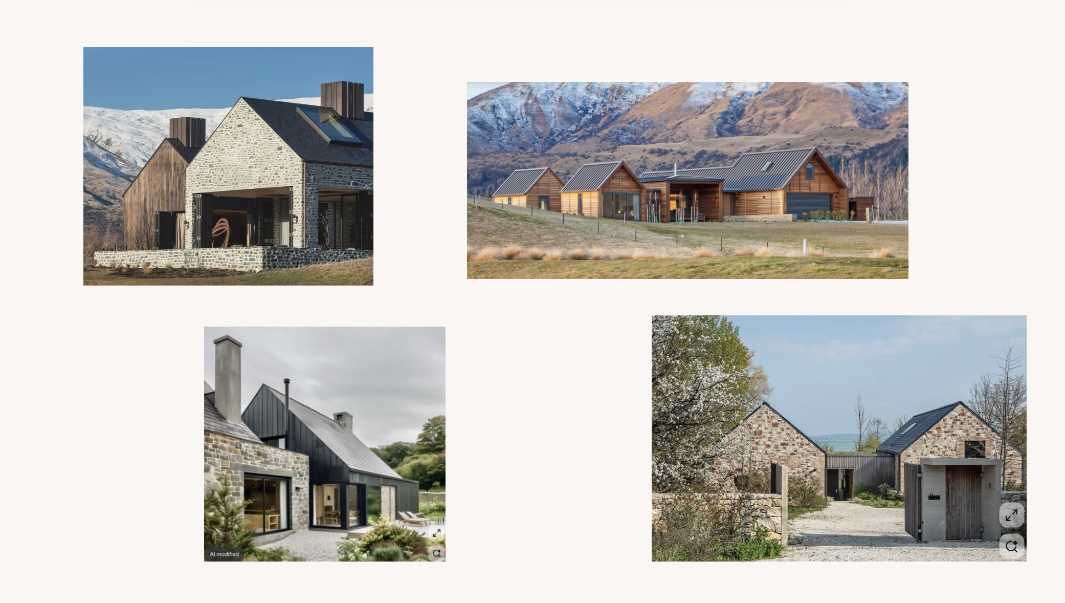 nz barn house exterior with stone and timber cladding set in the country gabled roof line architectural style