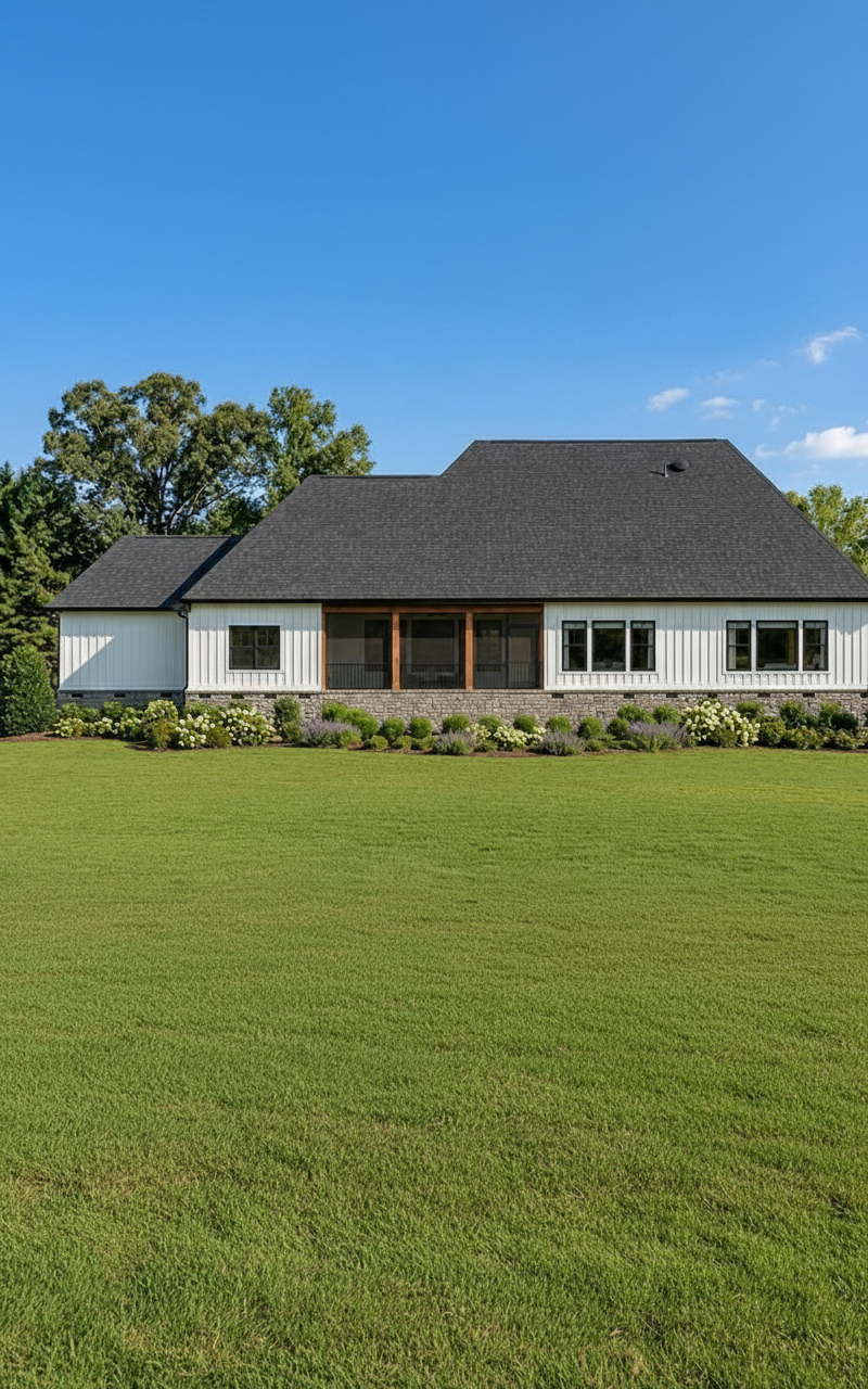 refine the craftsman style facade to correct architectural inconsistencies above the carport convert the roof area into a functional balcony with a clean horizontal deck and a simple craftsman railing made of wood posts and square balusters the balcony should look intentional and structurally supported by the carport posts below simplify and correct the gable truss details replace the current awkward decorative trusses with authentic craftsman gable detailing clean triangular wood brackets exposed rafter tails and a simple king post or knee brace style truss ensure the truss members align properly with the roof pitch and structural logic keep the rooflines balanced and remove any visually confusing or unrealistic framing elements maintain a natural craftsman aesthetic using cedar shingles in the gables horizontal lap siding on the walls natural stone porch bases and warm wood trim make house facade into an authentic american craftsman style home add architectural elements with craftsman features use low pitched gabled rooflines with wide overhanging eaves and exposed rafter tails replace the stucco and stone mix with horizontal wood siding cedar shingles and natural stone column bases use thick tapered square columns sitting on stone piers use warm natural materials such as stained wood river stone and earthy tones change the windows to craftsman style divided light windows with wood trim and upper sash grids add a solid wood craftsman front door with small glass panels keep the two small windows in the left adjust the roof structure if necessary to emphasize strong front facing gables use asphalt or cedar shake roofing incorporate craftsman details such as exposed beams wood brackets and natural handcrafted textures maintain the same house footprint but allow roofline modifications to achieve an authentic craftsman aesthetic use warm earthy colors such as sage green deep brown wood trim stone gray and cream accents california weather mountain town
