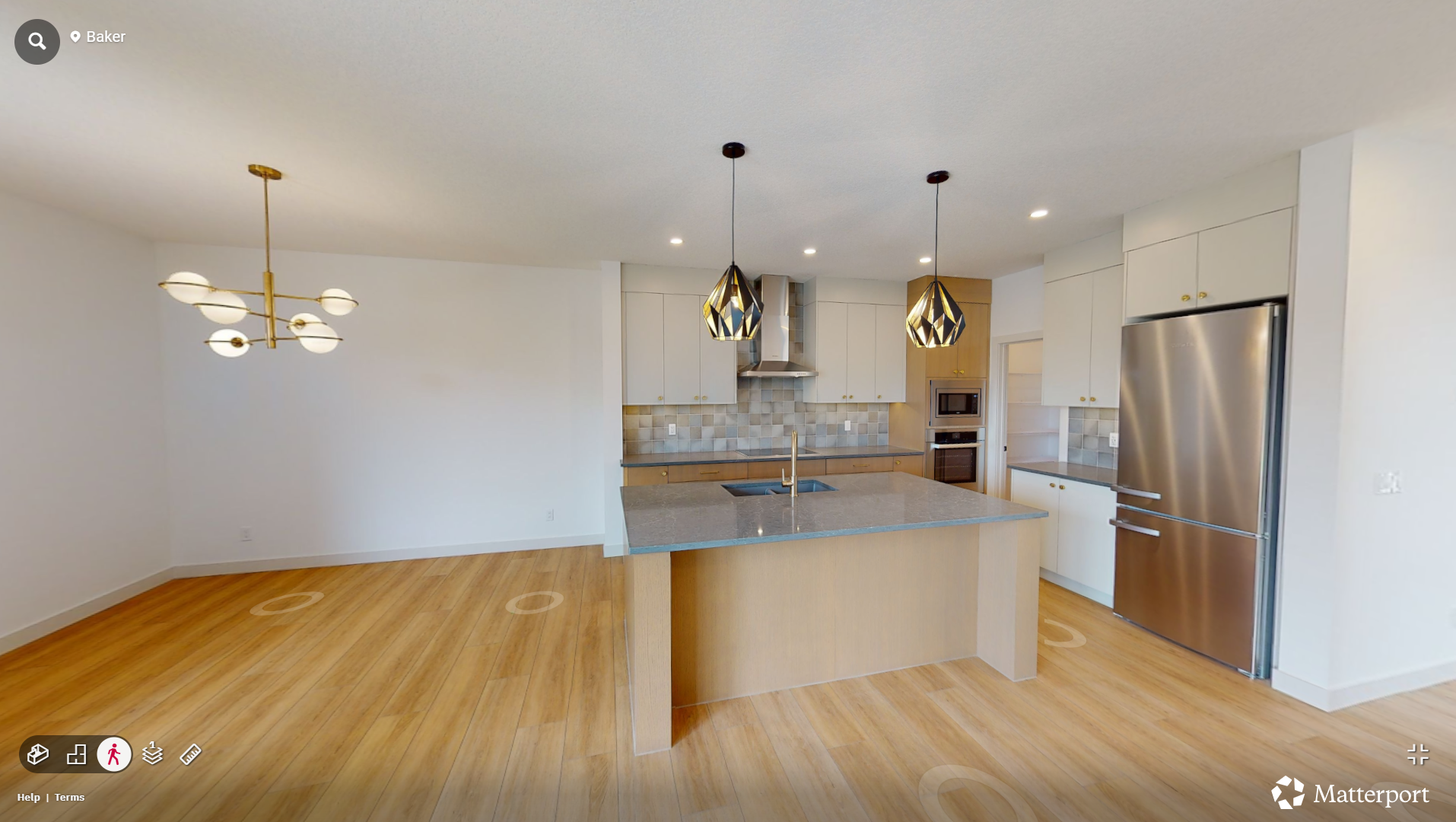 please change the kitchen design into a warm wooden minimalism style