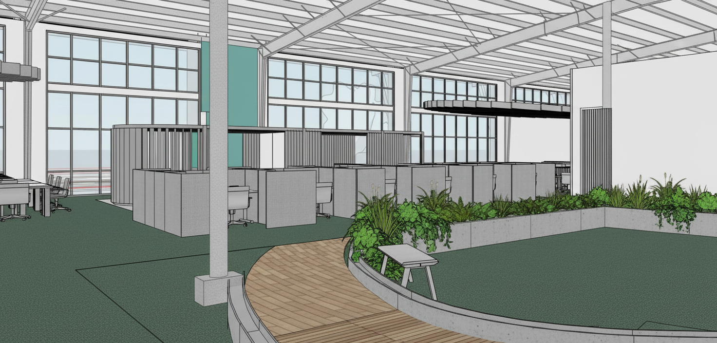 make the boardwalk the same pattern throughout turn the flooring with the squares into a green carpet make all walls a cream color