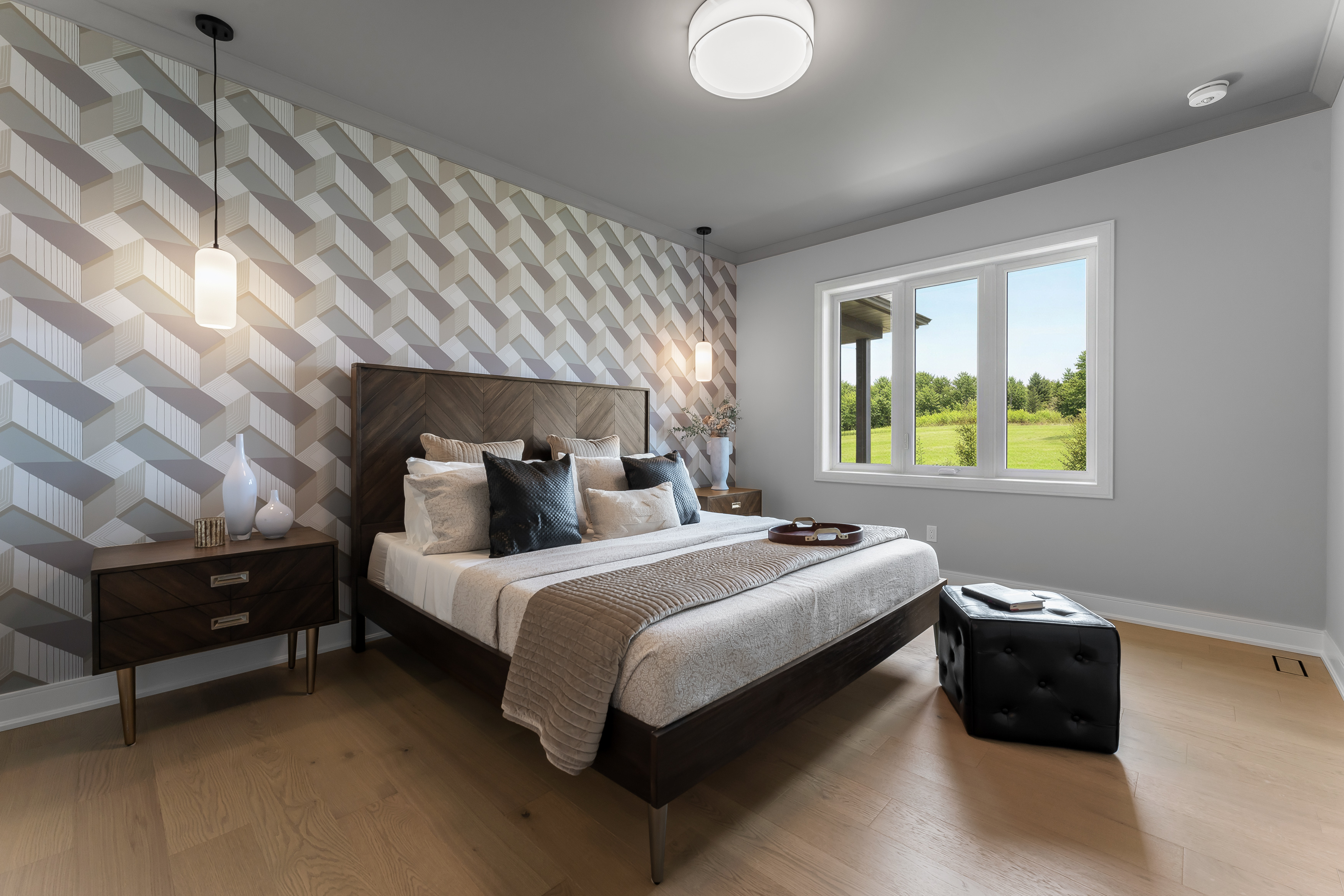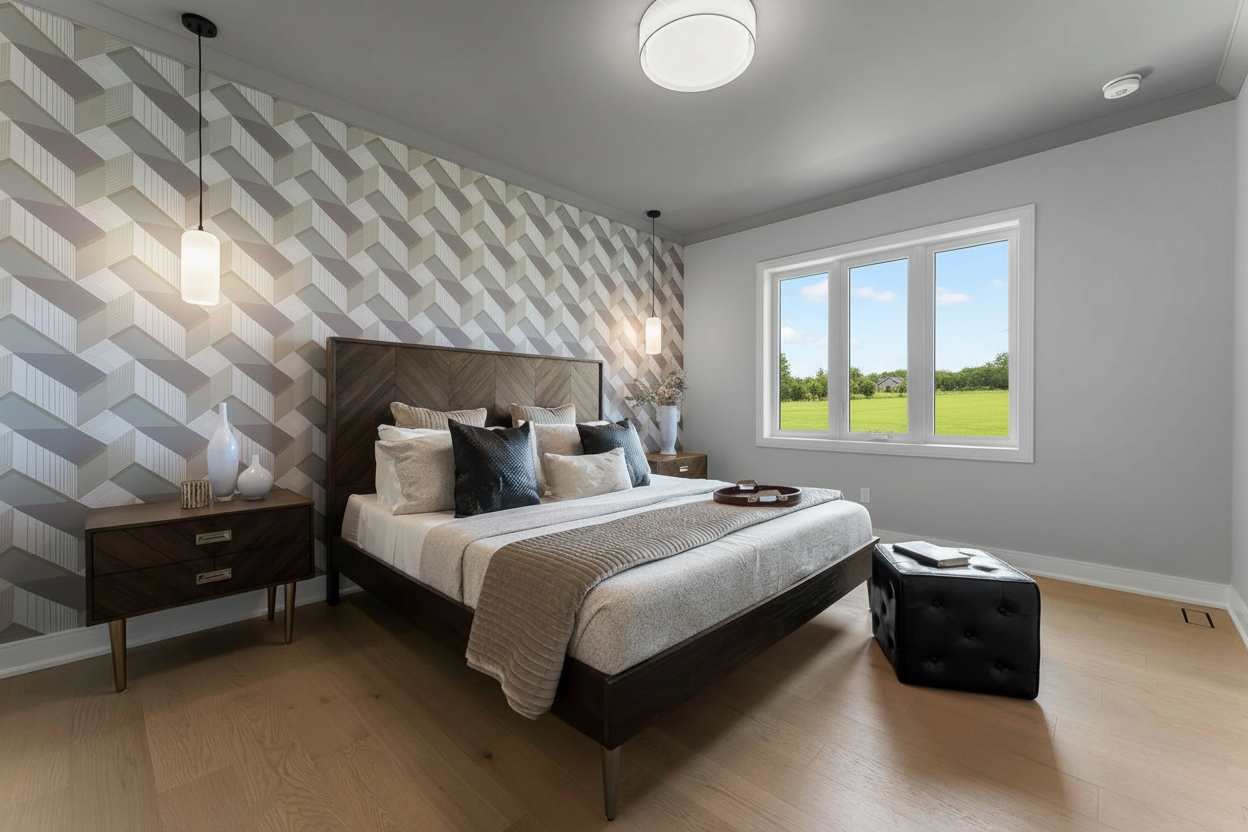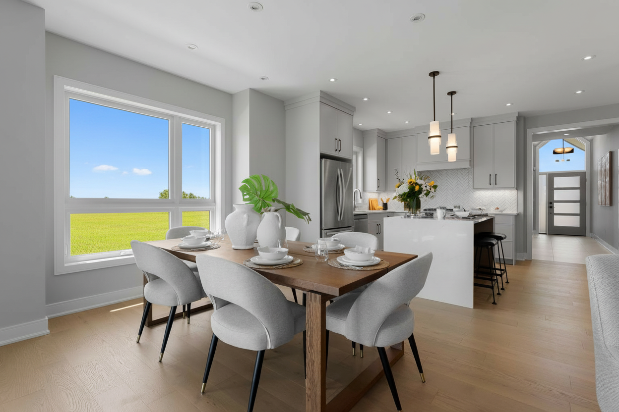 retain the structural elements of the home add green grass landscape through the windows few trees far away
